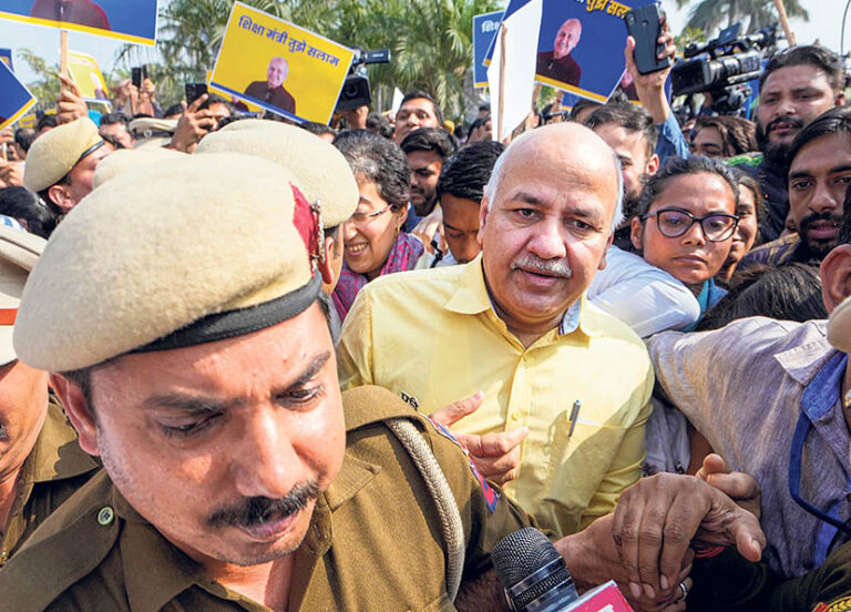 ਦਿੱਲੀ ਦੇ ਉਪ ਮੁੱਖ ਮੰਤਰੀ ਮਨੀਸ਼ ਸਿਸੋਦੀਆ ਨੂੰ ਸੀ.ਬੀ.ਆਈ. ਨੇ ਅੱਠ ਘੰਟੇ ਦੀ ਪੁੱਛਗਿੱਛ ਮਗਰੋਂ ਆਬਕਾਰੀ ਨੀਤੀ ਘੁਟਾਲੇ ‘ਚ ਗ੍ਰਿਫ਼ਤਾਰ ਕਰ ਲਿਆ। ਅੱਠ ਘੰਟਿਆਂ ਤੱਕ ਚੱਲੀ ਪੁੱਛ-ਪੜਤਾਲ ਦੌਰਾਨ ਸਿਸੋਦੀਆ ਸਵਾਲਾਂ ਦੇ ਜਵਾਬ ਦੇਣ ਤੋਂ ਬਚਦੇ ਆ ਰਹੇ ਸਨ ਅਤੇ ਉਨ੍ਹਾਂ ਵੱਲੋਂ ਦਿੱਤੇ ਗਏ ਕੁਝ ਜਵਾਬ ਤਸੱਲੀਬਖ਼ਸ਼ ਨਹੀਂ ਸਨ।ਸਿਸੋਦੀਆ ਸਵੇਰੇ ਸੀ.ਬੀ.ਆਈ. ਹੈੱਡਕੁਆਰਟਰ ‘ਤੇ ਪਹੁੰਚੇ। ਸੀ.ਬੀ.ਆਈ. ਦਫਤਰ ਦੇ ਬਾਹਰ ਬੈਰੀਕੇਡ ਲਗਾ ਕੇ ਸੁਰੱਖਿਆ ਦੇ ਸਖਤ ਪ੍ਰਬੰਧ ਕੀਤੇ ਗਏ ਸਨ। ਪੁਲੀਸ ਨੂੰ ਖ਼ਦਸ਼ਾ ਸੀ ਕਿ ‘ਆਪ’ ਵਰਕਰ ਹੰਗਾਮਾ ਕਰ ਸਕਦੇ ਹਨ। ਸੀ.ਬੀ.ਆਈ. ਦੀ ਭ੍ਰਿਸ਼ਟਾਚਾਰ ਵਿਰੋਧੀ ਸ਼ਾਖਾ ਦੇ ਅਧਿਕਾਰੀਆਂ ਨੇ ਆਬਕਾਰੀ ਨੀਤੀ ਦੇ ਵੱਖ ਵੱਖ ਪਹਿਲੂਆਂ, ਉਨ੍ਹਾਂ ਦੇ ਦਿਨੇਸ਼ ਅਰੋੜਾ ਤੇ ਹੋਰ ਮੁਲਜ਼ਮਾਂ ਨਾਲ ਸਬੰਧਾਂ ਅਤੇ ਫੋਨਾਂ ‘ਤੇ ਸੁਨੇਹਿਆਂ ਦੇ ਆਦਾਨ-ਪ੍ਰਦਾਨ ਦੇ ਵੇਰਵਿਆਂ ਬਾਰੇ ਸਵਾਲ ਪੁੱਛੇ ਸਨ। ਸੀ.ਬੀ.ਆਈ. ਜਾਂਚਕਾਰ ਸਿਸੋਦੀਆ ਵੱਲੋਂ ਦਿੱਤੇ ਗਏ ਜਵਾਬਾਂ ਤੋਂ ਸੰਤੁਸ਼ਟ ਨਹੀਂ ਸਨ। ਉਨ੍ਹਾਂ ਕਿਹਾ ਕਿ ਸਿਸੋਦੀਆ ਜਾਂਚ ‘ਚ ਸਹਿਯੋਗ ਨਹੀਂ ਕਰ ਰਹੇ ਸਨ ਅਤੇ ਅਹਿਮ ਨੁਕਤਿਆਂ ‘ਤੇ ਸਫ਼ਾਈ ਦੇਣ ਤੋਂ ਗੁਰੇਜ਼ ਕਰ ਰਹੇ ਸਨ ਜਿਸ ਕਾਰਨ ਉਨ੍ਹਾਂ ਨੂੰ ਗ੍ਰਿਫ਼ਤਾਰ ਕਰ ਲਿਆ ਗਿਆ ਹੈ। ਸੀ.ਬੀ.ਆਈ. ਦਫ਼ਤਰ ਪਹੁੰਚਣ ਤੋਂ ਪਹਿਲਾਂ ਸਿਸੋਦੀਆ ਨੇ ਖ਼ਦਸ਼ਾ ਜਤਾਇਆ ਸੀ ਕਿ ਉਨ੍ਹਾਂ ਨੂੰ ਗ੍ਰਿਫ਼ਤਾਰ ਕੀਤਾ ਜਾ ਸਕਦਾ ਹੈ। ਪੁੱਛ-ਪੜਤਾਲ ਲਈ ਸੀ.ਬੀ.ਆਈ. ਅੱਗੇ ਪੇਸ਼ ਹੋਣ ਤੋਂ ਪਹਿਲਾਂ ਸਿਸੋਦੀਆ ਨੇ ਪੱਤਰਕਾਰਾਂ ਨਾਲ ਗੱਲਬਾਤ ਕਰਦਿਆਂ ਕਿਹਾ ਕਿ ਉਹ ‘ਝੂਠੇ ਦੋਸ਼ਾਂ’ ਦੇ ਮਾਮਲੇ ‘ਚ ਜੇਲ੍ਹ ਜਾਣ ਤੋਂ ਨਹੀਂ ਡਰਦੇ ਹਨ। ‘ਜਦੋਂ ਮੈਂ ਪੱਤਰਕਾਰ ਵਜੋਂ ਆਪਣੀ ਨੌਕਰੀ ਛੱਡੀ ਸੀ ਤਾਂ ਮੇਰੀ ਪਤਨੀ ਨੇ ਮੈਨੂੰ ਹਮਾਇਤ ਦਿੱਤੀ ਸੀ ਅਤੇ ਅੱਜ ਵੀ ਮੇਰਾ ਪਰਿਵਾਰ ਨਾਲ ਖੜ੍ਹਾ ਹੈ। ਜੇਕਰ ਮੈਨੂੰ ਗ੍ਰਿਫ਼ਤਾਰ ਕਰ ਲਿਆ ਜਾਂਦਾ ਹੈ ਤਾਂ ਮੇਰੇ ਵਰਕਰ ਪਰਿਵਾਰ ਦਾ ਧਿਆਨ ਰੱਖਣਗੇ।’ ਸੀ.ਬੀ.ਆਈ. ਦੀ ਐੱਫ.ਆਈ.ਆਰ. ‘ਚ ਨੰਬਰ ਇਕ ਮੁਲਜ਼ਮ ‘ਆਪ’ ਆਗੂ ਤੋਂ ਪਿਛਲੇ ਸਾਲ 17 ਅਕਤੂਬਰ ਨੂੰ ਵੀ ਪੁੱਛ-ਪੜਤਾਲ ਕੀਤੀ ਗਈ ਸੀ। ਇਸ ਦੇ ਕਰੀਬ ਇਕ ਮਹੀਨੇ ਬਾਅਦ 25 ਨਵੰਬਰ ਨੂੰ ਏਜੰਸੀ ਨੇ ਚਾਰਜਸ਼ੀਟ ਦਾਖ਼ਲ ਕੀਤੀ ਸੀ। ਸੀ.ਬੀ.ਆਈ. ਨੇ ਚਾਰਜਸ਼ੀਟ ‘ਚ ਸਿਸੋਦੀਆ ਦਾ ਨਾਮ ਨਹੀਂ ਲਿਆ ਹੈ ਕਿਉਂਕਿ ਉਸ ਨੇ ਉਨ੍ਹਾਂ ਖ਼ਿਲਾਫ਼ ਹੋਰ ਸ਼ੱਕੀਆਂ ਤੇ ਮੁਲਜ਼ਮਾਂ ਖ਼ਿਲਾਫ਼ ਜਾਂਚ ਖੁੱਲ੍ਹੀ ਰੱਖੀ ਹੋਈ ਹੈ।