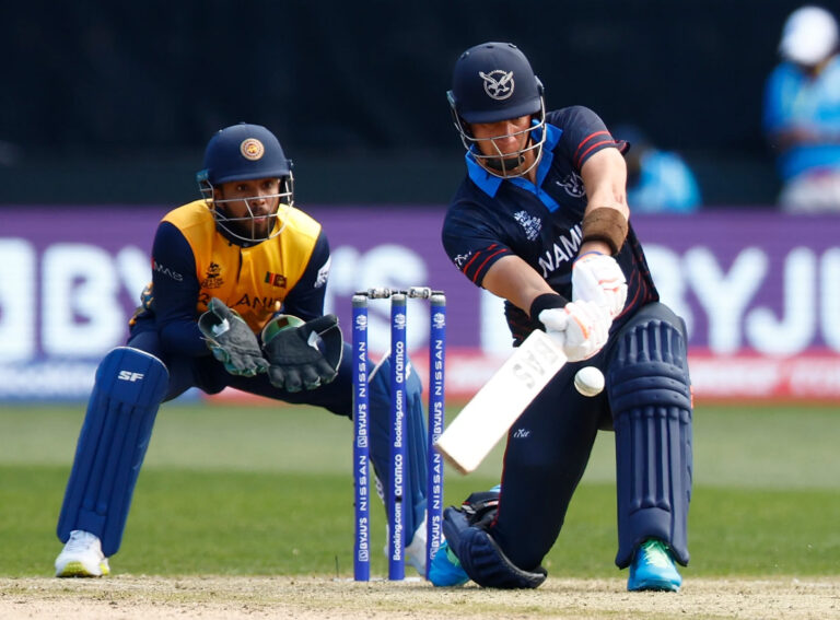 ਟੀ-20 ਵਰਲਡ ਕੱਪ ਐਤਵਾਰ ਨੂੰ ਆਸਟਰੇਲੀਆ ਵਿਖੇ ਸ਼ੁਰੂ ਹੋ ਗਿਆ। ਵਰਲਡ ਕੱਪ ਦਾ ਪਹਿਲਾ ਮੈਚ ਗੀਲੋਂਗ ਦੇ ਸਿਮੰਡਸ ਸਟੇਡੀਅਮ ‘ਚ ਖੇਡਿਆ ਗਿਆ। ਇਸ ‘ਚ ਨਾਮੀਬੀਆ ਨੇ ਸ੍ਰੀਲੰਕਾ ਨੂੰ 55 ਦੌੜਾਂ ਦੀ ਕਰਾਰੀ ਹਾਰ ਦਿੱਤੀ। ਇਸ ਦੇ ਨਾਲ ਹੀ ਨਾਮੀਬੀਆ ਨੇ ਇਕ ਵੱਡਾ ਰਿਕਾਰਡ ਬਣਾਇਆ ਹੈ। ਨਾਮੀਬੀਆ ਟੀ-20 ਇੰਟਰਨੈਸ਼ਨਲ ‘ਚ ਇਕ ਐਸੋਸੀਏਟ ਟੀਮ ਬਨਾਮ ਪੂਰਨ ਮੈਂਬਰ ਟੀਮ ਦਰਮਿਆਨ ਦੌੜਾਂ ਦੇ ਹਿਸਾਬ ਨਾਲ ਸਭ ਤੋਂ ਵੱਡੀ ਜਿੱਤ ਦਰਜ ਕਰਨ ਵਾਲੀ ਤੀਜੀ ਟੀਮ ਬਣ ਗਈ। ਨਾਮੀਬੀਆ ਤੋਂ ਮਿਲੇ 164 ਦੌੜਾਂ ਦੇ ਟੀਚੇ ਦਾ ਪਿੱਛਾ ਕਰਨ ਉੱਤਰੀ ਸ੍ਰੀਲੰਕਾ ਦੀ ਸ਼ੁਰੂਆਤ ਖਰਾਬ ਰਹੀ। ਉਸ ਨੇ ਕੁਸਲ ਮੈਂਡਿਸ (6), ਪਾਥੁਮ ਨਿਸਾਨਕਾ (9) ਅਤੇ ਦਾਨੁਸ਼ਕਾ ਗੁਣਾਤਿਲਾ (0) ਦੀਆਂ ਮਹੱਤਵਪੂਰਨ ਵਿਕਟਾਂ ਸਿਰਫ 21 ਦੌੜਾਂ ‘ਤੇ ਗੁਆ ਦਿੱਤੀਆਂ। ਹਾਲਾਂਕਿ ਇਸ ਤੋਂ ਬਾਅਦ ਧਨੰਜੇ ਡੀ ਸਿਲਵਾ ਅਤੇ ਭਾਨੁਕਾ ਰਾਜਪਕਸ਼ੇ ਨੇ ਟੀਮ ਨੂੰ ਸੰਭਾਲਣ ਦੀ ਕੋਸ਼ਿਸ਼ ਕੀਤੀ ਪਰ ਉਹ ਵੀ ਨਾਮੀਬੀਆ ਦੇ ਖ਼ਿਲਾਫ਼ ਬੇਵੱਸ ਨਜ਼ਰ ਆਏ ਅਤੇ 7ਵੇਂ ਓਵਰ ‘ਚ ਡੀ ਸਿਲਵਾ ਅਤੇ 11ਵੇਂ ਓਵਰ ‘ਚ ਰਾਜਪਕਸ਼ੇ ਆਊਟ ਹੋ ਗਏ। ਇਸ ਤੋਂ ਬਾਅਦ ਵੀ ਲਗਾਤਾਰ ਵਿਕਟਾਂ ਡਿੱਗਦੀਆਂ ਰਹੀਆਂ ਅਤੇ ਟੀਮ 19 ਓਵਰਾਂ ‘ਚ 108 ਦੌੜਾਂ ‘ਤੇ ਢੇਰ ਹੋ ਗਈ। ਡੇਵਿਡ ਵਿਸੇ, ਬਰਨਾਰਡ ਸ਼ੋਲਟਜ਼, ਬੇਨ ਸ਼ਿਕੋਂਗੋ ਅਤੇ ਜਾਨ ਫਰੀਲਿੰਕ ਨੇ 2-2 ਵਿਕਟਾਂ ਲਈਆਂ ਜਦਕਿ ਜੇ ਜੇ ਸਮਿਟੋ ਨੂੰ ਇਕ ਵਿਕਟ ਮਿਲੀ। ਇਸ ਤੋਂ ਪਹਿਲਾਂ ਸ੍ਰੀਲੰਕਾ ਨੇ ਟਾਸ ਜਿੱਤ ਕੇ ਨਾਮੀਬੀਆ ਨੂੰ ਪਹਿਲਾਂ ਬੱਲੇਬਾਜ਼ੀ ਕਰਨ ਲਈ ਬੁਲਾਇਆ। ਜੇਨ ਫ੍ਰੀਲਿੰਕ (44) ਅਤੇ ਜੇ ਜੇ ਸਮਿਟ (ਅਜੇਤੂ 31) ਦਰਮਿਆਨ 70 ਦੌੜਾਂ ਦੀ ਵਿਸਫੋਟਕ ਸਾਂਝੇਦਾਰੀ ਦੀ ਮਦਦ ਨਾਲ ਨਾਮੀਬੀਆ ਨੇ ਆਈ.ਸੀ.ਸੀ. ਟੀ-20 ਵਿਸ਼ਵ ਕੱਪ 2022 ਦੇ ਗਰੁੱਪ ਏ ਮੈਚ ‘ਚ ਸ਼੍ਰੀਲੰਕਾ ਦੇ ਸਾਹਮਣੇ 164 ਦੌੜਾਂ ਦਾ ਟੀਚਾ ਰੱਖਿਆ। ਫਰੀਲਿੰਕ ਨੇ 28 ਗੇਂਦਾਂ ‘ਤੇ ਚਾਰ ਚੌਕਿਆਂ ਦੀ ਮਦਦ ਨਾਲ 44 ਦੌੜਾਂ ਬਣਾਈਆਂ ਜਦਕਿ ਸਮਿਟ ਨੇ 16 ਗੇਂਦਾਂ ‘ਤੇ ਦੋ ਚੌਕਿਆਂ ਅਤੇ ਦੋ ਛੱਕਿਆਂ ਦੀ ਮਦਦ ਨਾਲ 31 ਦੌੜਾਂ ਦੀ ਅਜੇਤੂ ਪਾਰੀ ਖੇਡ ਕੇ ਨਾਮੀਬੀਆ ਨੂੰ 20 ਓਵਰਾਂ ‘ਚ 163/7 ਦੇ ਸਕੋਰ ਤਕ ਪਹੁੰਚਾਇਆ। ਸ੍ਰੀਲੰਕਾ ਵਲੋਂ ਪ੍ਰਮੋਦ ਮਦੁਸ਼ਾਨੀ ਨੇ ਦੋ ਵਿਕਟਾਂ ਲਈਆਂ ਜਦਕਿ ਦਿਕਸ਼ਾਨਾ, ਚਮੀਰਾ, ਕਰੁਣਾਰਤਨੇ ਅਤੇ ਹਸਾਰੰਗਾ ਨੇ ਇਕ-ਇਕ ਵਿਕਟ ਲਈ।