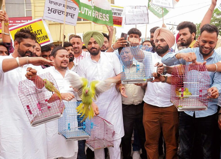 ਪੰਜਾਬ ਯੂਥ ਕਾਂਗਰਸ ਦੇ ਸੂਬਾਈ ਪ੍ਰਧਾਨ ਬਰਿੰਦਰ ਸਿੰਘ ਢਿੱਲੋਂ ਦੀ ਅਗਵਾਈ ਹੇਠ ਯੂਥ ਕਾਂਗਰਸ ਦੇ ਵਰਕਰਾਂ ਨੇ ਜਲੰਧਰ ’ਚ ਈ.ਡੀ. ਦੇ ਦਫ਼ਤਰ ਦੇ ਬਾਹਰ ਧਰਨਾ ਲਾਇਆ ਤੇ ਕੇਂਦਰ ਸਰਕਾਰ ਖ਼ਿਲਾਫ਼ ਨਾਅਰੇਬਾਜ਼ੀ ਕੀਤੀ। ਯੂਥ ਕਾਂਗਰਸ ਦੇ ਆਗੂਆਂ ਨੇ ਹੱਥਾਂ ’ਚ ਤਖ਼ਤੀਆਂ ਫਡ਼ੀਆਂ ਹੋਈਆਂ ਸਨ ਜਿਨ੍ਹਾਂ ’ਤੇ ਈ.ਡੀ. ਤੇ ਸੀ.ਬੀ.ਆਈ. ਨੂੰ ਕੇਂਦਰ ਸਰਕਾਰ ਦੇ ਤੋਤੇ ਲਿਖਿਆ ਹੋਇਆ ਸੀ। ਯੂਥ ਕਾਂਗਰਸ ਦੇ ਪ੍ਰਧਾਨ ਬਰਿੰਦਰ ਸਿੰਘ ਢਿੱਲੋਂ ਨੇ ਧਰਨੇ ’ਚ ਦੋ ਪਿੰਜਰੇ ਰੱਖੇ ਹੋਏ ਸਨ ਜਿਨ੍ਹਾਂ ਵਿੱਚ ਤੋਤੇ ਸਨ। ਉਨ੍ਹਾਂ ਕਿਹਾ ਕਿ ਕੇਂਦਰ ਸਰਕਾਰ ਕੈਦ ਕੀਤੇ ਇਨ੍ਹਾਂ ਤੋਤਿਆਂ ਰਾਹੀਂ ਆਪਣੀ ਬੋਲੀ ਬੋਲ ਰਹੀ ਹੈ। ਉਨ੍ਹਾਂ ਕਿਹਾ ਕਿ ਸੰਵਿਧਾਨਕ ਸੰਸਥਾਵਾਂ ਨੂੰ ਤੋਤੇ ਬਣਾ ਕੇ ਵਰਤਿਆ ਜਾ ਰਿਹਾ ਹੈ। ਇਨ੍ਹਾਂ ਤੋਤਿਆਂ ਨੂੰ ਆਜ਼ਾਦ ਕੀਤਾ ਜਾਵੇਗਾ। ਕਾਂਗਰਸ ਦੇ ਜ਼ਿਲ੍ਹਾ ਸ਼ਹਿਰੀ ਦੇ ਪ੍ਰਧਾਨ ਬਲਰਾਜ ਠਾਕੁਰ ਨੇ ਕਿਹਾ ਕਿ ਪਾਰਟੀ ਦੀ ਕੌਮੀ ਪ੍ਰਧਾਨ ਸੋਨੀਆ ਗਾਂਧੀ ਨੂੰ ਈ.ਡੀ. ਦਫ਼ਤਰ ’ਚ ਪਡ਼ਤਾਲ ਕਰਨ ਬਹਾਨੇ ਤੰਗ ਪ੍ਰੇਸ਼ਾਨ ਕਰ ਕੇ ਦੇਸ਼ ਦਾ ਧਿਆਨ ਭੱਖਦੇ ਮੁੱਦਿਆਂ ਤੋਂ ਹਟਾਇਆ ਜਾ ਰਿਹਾ ਹੈ। ਉਨ੍ਹਾਂ ਕਿਹਾ ਕਿ ਦੇਸ਼ ’ਚ ਬੇਰੁਜ਼ਗਾਰੀ ਦਾ ਵੱਡਾ ਮੁੱਦਾ ਹੈ ਤੇ ਨੌਕਰੀਆਂ ਦੇ ਮੌਕੇ ਲਗਾਤਾਰ ਘਟ ਰਹੇ ਹਨ। ਉਨ੍ਹਾਂ?ਕਿਹਾ ਕਿ ਜੀ.ਐੱਸ.ਟੀ. ਕਰ ਕੇ ਨਿੱਤ ਵਰਤੋਂ ਦੀਆਂ ਵਸਤਾਂ ਦੇ ਭਾਅ ਆਸਮਾਨੀ ਚਡ਼੍ਹ ਗਏ ਹਨ। ਯੂਥ ਕਾਂਗਰਸ ਦੇ ਜ਼ਿਲ੍ਹਾ ਸ਼ਹਿਰੀ ਦੇ ਪ੍ਰਧਾਨ ਅੰਗਦ ਦੱਤਾ ਨੇ ਕਿਹਾ ਕਿ ਯੂਥ ਕਾਂਗਰਸ ਮੋਦੀ ਸਰਕਾਰ ਦੀਆਂ ਨੀਤੀਆਂ ਦਾ ਸਡ਼ਕਾਂ ’ਤੇ ਲਗਾਤਾਰ ਵਿਰੋਧ ਕਰਦੀ ਰਹੇਗੀ। ਉਧਰ, ਕਾਂਗਰਸ ਭਵਨ ’ਚ ਕਾਂਗਰਸੀ ਰੋਸ ਧਰਨੇ ’ਤੇ ਬੈਠੇ। ਜ਼ਿਲ੍ਹਾ ਕਾਂਗਰਸ ਸ਼ਹਿਰੀ ਦੇ ਪ੍ਰਧਾਨ ਬਲਰਾਜ ਠਾਕੁਰ ਤੇ ਦਿਹਾਤੀ ਦੇ ਪ੍ਰਧਾਨ ਦਰਸ਼ਨ ਸਿੰਘ ਟਾਹਲੀ ਦੀ ਅਗਵਾਈ ਹੇਠ ਸੱਤਿਆਗ੍ਰਹਿ ਤਹਿਤ ਈ.ਡੀ. ਵਿਰੁੱਧ ਧਰਨਾ ਦਿੱਤਾ ਗਿਆ। ਧਰਨੇ ’ਚ ਵਿਧਾਇਕ ਸੁਖਵਿੰਦਰ ਸਿੰਘ ਕੋਟਲੀ, ਸਾਬਕਾ ਵਿਧਾਇਕ ਸ਼ੁਸ਼ੀਲ ਰਿੰਕੂ, ਰਾਜਿੰਦਰ ਬੇਰੀ ਤੇ ਬਾਵਾ ਹੈਨਰੀ ਸਣੇ ਹੋਰ ਕਾਂਗਰਸੀ ਆਗੂ ਸ਼ਾਮਲ ਹੋਏ।