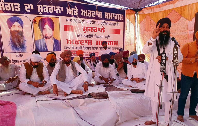 ਦੋਵੇਂ ਬਾਦਲਾਂ ਅਤੇ ਸਾਬਕਾ ਡੀ.ਜੀ.ਪੀ. ਸੁਮੇਧ ਸਿੰਘ ਸੈਣੀ ਸਮੇਤ ਹੋਰਨਾਂ ਖ਼ਿਲਾਫ਼ ਐੱਸ.ਆਈ.ਟੀ. ਵੱਲੋਂ ਅਦਾਲਤ ‘ਚ ਚਾਰਜਸ਼ੀਟ ਦਾਖ਼ਲ ਕਰਨ ਦੇ ਬਾਵਜੂਦ ਬਹਿਬਲ ਕਲਾਂ ਇਨਸਾਫ਼ ਮੋਰਚਾ ਨਹੀਂ ਚੁੱਕਿਆ ਜਾਵੇਗਾ। ਇਹ ਮੋਰਚਾ ਇਨਸਾਫ਼ ਮਿਲਣ ਤੱਕ ਜਾਰੀ ਰੱਖਣ ਦਾ ਫ਼ੈਸਲਾ ਲਿਆ ਗਿਆ ਹੈ। ਬਹਿਬਲ ਕਲਾਂ ‘ਚੋਂ ਲੰਘਦੇ ਹਾਈਵੇਅ ‘ਤੇ ਕਰੀਬ 15 ਮਹੀਨੇ ਤੋਂ ਚੱਲ ਰਹੇ ‘ਇਨਸਾਫ਼ ਮੋਰਚਾ’ ਦੇ ਪ੍ਰਬੰਧਕਾਂ ਨੇ ਕੋਟਕਪੂਰਾ ਘਟਨਾ ਦੇ ਸਬੰਧ ‘ਚ ਚਾਰਜਸ਼ੀਟ ਦਾਇਰ ਹੋਣ ‘ਤੇ ਸ਼ੁਕਰਾਨਾ ਸਮਾਗਮ ਕਰਵਾਇਆ। ਇਸ ਮੌਕੇ ਅਖੰਡ ਪਾਠ ਦੇ ਭੋਗ ਪਾਏ ਗਏ। ਅਰਦਾਸ ਸਮਾਗਮ ‘ਚ ਪੰਜਾਬ ਵਿਧਾਨ ਸਭਾ ਦੇ ਸਪੀਕਰ ਕੁਲਤਾਰ ਸਿੰਘ ਸੰਧਵਾਂ ਅਤੇ ਕੈਬਨਿਟ ਮੰਤਰੀ ਕੁਲਦੀਪ ਸਿੰਘ ਧਾਲੀਵਾਲ ਨੇ ਸ਼ਿਰਕਤ ਕੀਤੀ। ਸਮਾਗਮ ‘ਚ ਇਕ ਪਾਸੇ ਪ੍ਰਬੰਧਕਾਂ ਨੇ ਐਲਾਨ ਕੀਤਾ ਕਿ ਬਹਿਬਲ ਕਲਾਂ ਗੋਲੀ ਕਾਂਡ ‘ਚ ਚਲਾਨ ਪੇਸ਼ ਹੋਣ ਤੱਕ ਇਨਸਾਫ਼ ਮੋਰਚਾ ਜਾਰੀ ਰਹੇਗਾ, ਜਦੋਂ ਕਿ ਕੁਲਦੀਪ ਸਿੰਘ ਧਾਲੀਵਾਲ ਨੇ ਭਰੋਸਾ ਦਿੱਤਾ ਕਿ ਬਹਿਬਲ ਕਾਂਡ ‘ਚ 2-4 ਦਿਨਾਂ ‘ਚ ਚਲਾਨ ਪੇਸ਼ ਕਰ ਦਿੱਤਾ ਜਾਵੇਗਾ। ਇਨਸਾਫ਼ ਮੋਰਚੇ ਨੇ ਬਹਿਬਲ ਕਲਾਂ ਤੋਂ ਮਾਰਚ ਕਰਕੇ ਅੰਮ੍ਰਿਤਸਰ ਜਾਣ ਅਤੇ ਉਥੇ ਸ੍ਰੀ ਹਰਿਮੰਦਰ ਸਾਹਿਬ ਅਤੇ ਅਕਾਲ ਤਖ਼ਤ ‘ਤੇ ਅਰਦਾਸ ਕਰਨ ਦਾ ਫ਼ੈਸਲਾ ਲਿਆ ਹੈ ਜਿਸ ਲਈ ਜਥਾ ਰਵਾਨਾ ਹੋ ਗਿਆ ਹੈ। ਇਸ ਮੌਕੇ ਕੈਬਨਿਟਮ ੰਤਰੀ ਧਾਲੀਵਾਲ ਨੇ ਮੁੱਖ ਮੰਤਰੀ ਭਗਵੰਤ ਮਾਨ ਤਰਫੋਂ ਇਨਸਾਫ਼ ਮੋਰਚੇ ਨੂੰ ਭਰੋਸਾ ਦਿੱਤਾ ਕਿ ਸਿੱਖ ਸੰਗਤ ਇਨਸਾਫ਼ ਦੀ ਲੜਾਈ ‘ਚ ਇਕੱਲੀ ਨਹੀਂ ਹੈ, ਪੰਜਾਬ ਸਰਕਾਰ ਹਰ ਤਰ੍ਹਾਂ ਨਾਲ ਉਨ੍ਹਾਂ ਦੇ ਨਾਲ ਹੈ। ਉਨ੍ਹਾਂ ਕਿਹਾ ਕਿ ਸ੍ਰੀ ਗੁਰੂ ਗ੍ਰੰਥ ਸਾਹਿਬ ਦੀ ਬੇਅਦਬੀ ਕਰਨ ਵਾਲਿਆਂ ਨੂੰ ਸਰਕਾਰ ਸਲਾਖਾਂ ਪਿੱਛੇ ਡੱਕਣ ‘ਚ ਦੇਰ ਨਹੀਂ ਕਰੇਗੀ ਅਤੇ ਇਸ ਦੇ ਨਾਲ ਹੀ ਸਰਕਾਰ ਕਾਨੂੰਨੀ ਫਰੰਟ ‘ਤੇ ਵੀ ਦੋਸ਼ੀਆਂ ਨੂੰ ਸਜ਼ਾ ਦਿਵਾਏਗੀ। ਕੁਲਤਾਰ ਸਿੰਘ ਸੰਧਵਾਂ ਨੇ ਕਿਹਾ ਕਿ ਸਰਕਾਰ ਵੱਲੋਂ ਜੋ ਭਰੋਸਾ ਦਿੱਤਾ ਗਿਆ ਸੀ, ਉਹ ਪੂਰਾ ਕੀਤਾ ਗਿਆ ਹੈ। ਉਨ੍ਹਾਂ ਕਿਹਾ ਕਿ ਸਰਕਾਰ ਕਾਨੂੰਨੀ ਪ੍ਰਕਿਰਿਆ ‘ਚ ਕੋਈ ਅੜਿੱਕਾ ਨਹੀਂ ਪਾਵੇਗੀ। ਉਨ੍ਹਾਂ ਬਹਿਬਲ ਕਾਂਡ ‘ਚ ਮਾਰੇ ਗਏ ਗੁਰਜੀਤ ਸਿੰਘ ਦੇ ਪਰਿਵਾਰਕ ਮੈਂਬਰਾਂ ਨਾਲ ਵੀ ਮੁਲਾਕਾਤ ਕੀਤੀ। ਇਨਸਾਫ਼ ਮੋਰਚੇ ਦੀ ਅਗਵਾਈ ਕਰ ਰਹੇ ਸੁਖਰਾਜ ਸਿੰਘ ਨਿਆਮੀਵਾਲਾ ਨੇ ਲਗਪਗ 15 ਮਹੀਨਿਆਂ ਤੋਂ ਮੋਰਚੇ ਨੂੰ ਸਹਿਯੋਗ ਦੇ ਰਹੀ ਸੰਗਤ ਦਾ ਧੰਨਵਾਦ ਕਰਦਿਆਂ ਕਿਹਾ ਕਿ ਜਦੋਂ ਤੱਕ ਬਹਿਬਲ ਕਲਾਂ ਗੋਲੀ ਕਾਂਡ ਦਾ ਚਲਾਨ ਪੇਸ਼ ਨਹੀਂ ਕੀਤਾ ਜਾਂਦਾ, ਉਦੋਂ ਤੱਕ ਮੋਰਚਾ ਜਾਰੀ ਰਹੇਗਾ। ਉਨ੍ਹਾਂ ਕਿਹਾ ਕਿ ਮੋਰਚੇ ਦੀ ਮੰਗ ਸੀ ਕਿ ਮੁੱਖ ਮੁਲਜ਼ਮਾਂ ਖ਼ਿਲਾਫ਼ ਚਾਰਜਸ਼ੀਟ ਪੇਸ਼ ਕੀਤੀ ਜਾਵੇ ਅਤੇ ਹੁਣ ਮੁੱਖ ਮੁਲਜ਼ਮ ਸਾਹਮਣੇ ਆ ਗਏ ਹਨ, ਹੁਣ ਉਨ੍ਹਾਂ ਖ਼ਿਲਾਫ਼ ਅਦਾਲਤ ‘ਚ ਲੜਾਈ ਲੜੀ ਜਾ ਸਕਦੀ ਹੈ।