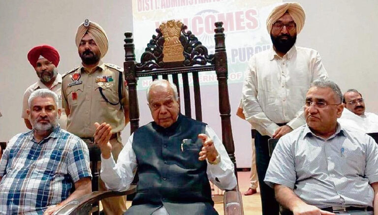 ਇਕ ਵਾਰ ਫਿਰ ਫੀਲਡ ‘ਚ ਸਰਗਰਮ ਹੋਏ ਪੰਜਾਬ ਦੇ ਰਾਜਪਾਲ ਬਨਵਾਰੀ ਲਾਲ ਪੁਰੋਹਿਤ ਨੇ ਸਰਹੱਦੀ ਇਲਾਕਿਆਂ ‘ਚ ਹੋ ਰਹੀ ਗ਼ੈਰਕਾਨੂੰਨੀ ਮਾਈਨਿੰਗ ਉਤੇ ਚਿੰਤਾ ਪ੍ਰਗਟ ਕਰਦੇ ਹੋਏ ਕਿਹਾ ਕਿ ਅਜਿਹੇ ਲੋਕਾਂ ਵਿਰੁੱਧ ਦੇਸ਼ਧ੍ਰੋਹ ਦਾ ਪਰਚਾ ਦਰਜ ਹੋਣਾ ਚਾਹੀਦਾ ਹੈ। ਇਸੇ ਤਰ੍ਹਾਂ ਪੰਜਾਬ ‘ਚ ਫੈਲੇ ਨਸ਼ਿਆਂ ਨੂੰ ਲੈ ਕੇ ਵੀ ਉਨ੍ਹਾਂ ਵੱਡੀ ਗੱਲ ਆਖੀ ਹੈ। ਅੰਮ੍ਰਿਤਸਰ ਅਤੇ ਤਰਨ ਤਾਰਨ ਜ਼ਿਲ੍ਹਿਆਂ ਦੇ ਸਰਹੱਦੀ ਪੱਟੀ ਨਾਲ ਸਬੰਧਤ ਸਰਪੰਚਾਂ ਨਾਲ ਗੱਲਬਾਤ ਕਰਦੇ ਹੋਏ ਉਨ੍ਹਾਂ ਸਰਹੱਦ ਪਾਰੋਂ ਹੁੰਦੀ ਨਸ਼ੇ ਅਤੇ ਹਥਿਆਰਾਂ ਦੀ ਤਸਕਰੀ ਨੂੰ ਰੋਕਣ ਲਈ ਸਹਿਯੋਗ ਮੰਗਿਆ ਹੈ। ਉਨ੍ਹਾਂ ਸਰਹੱਦੀ ਇਲਾਕੇ ‘ਚ ਹੁੰਦੀ ਗ਼ੈਰਕਾਨੂੰਨੀ ਮਾਈਨਿੰਗ ਉਤੇ ਵੀ ਚਿੰਤਾ ਪ੍ਰਗਟ ਕਰਦਿਆਂ ਕਿਹਾ ਕਿ ਅਜਿਹੇ ਲੋਕਾਂ ਵਿਰੁੱਧ ਦੇਸ਼ਧ੍ਰੋਹ ਦਾ ਪਰਚਾ ਦਰਜ ਹੋਣਾ ਚਾਹੀਦਾ ਹੈ ਕਿਉਂਕਿ ਇਸ ਮਾਈਨਿੰਗ ਨਾਲ ਸਰਹੱਦ ਉਤੇ ਬਣੇ ਫੌਜ ਦੇ ਮੋਰਚੇ, ਬੰਕਰ ਅਤੇ ਪੁਲਾਂ ਤੱਕ ਨੂੰ ਨੁਕਸਾਨ ਹੋ ਰਿਹਾ ਹੈ, ਜੋ ਰਾਸ਼ਟਰ ਦੀ ਸੁਰੱਖਿਆ ਲਈ ਵੱਡਾ ਖ਼ਤਰਾ ਹੈ। ਉਨ੍ਹਾਂ ਸਰਹੱਦੀ ਲੋਕਾਂ ਦੀ ਬਹਾਦਰੀ ਦੀ ਸ਼ਲਾਘਾ ਕਰਦਿਆਂ ਕਿਹਾ ਕਿ ਜੇਕਰ ਸਰੱਹਦੀ ਲੋਕ ਤਸਕਰੀ ਤੇ ਮਾਈਨਿੰਗ ਵਰਗੇ ਖਤਰਿਆਂ ਤੋਂ ਸੁਚੇਤ ਹੋ ਜਾਣ ਤਾਂ ਇਹ ਕੁਰੀਤੀਆਂ ਨੂੰ ਜਲਦੀ ਖਤਮ ਕੀਤਾ ਜਾ ਸਕਦਾ ਹੈ। ਉਨ੍ਹਾਂ ਪੰਜਾਬ ਸਰਕਾਰ ਨੂੰ ਕਿਹਾ ਕਿ ਉਹ ਸਰਹੱਦੀ ਖੇਤਰ ਦੇ 6 ਜ਼ਿਲ੍ਹਿਆਂ ‘ਚ ਨਾਗਰਿਕ ਸੁਰੱਖਿਆ ਕਮੇਟੀਆਂ ਬਣਾਉਣ ਜੋ ਕਿ ਆਪਣੇ-ਆਪਣੇ ਇਲਾਕੇ ਵਿੱਚ ਸਮਾਜਿਕ ਮੁੱਦਿਆਂ ‘ਤੇ ਕੰਮ ਕਰਨ। ਸਰਹੱਦੀ ਖੇਤਰ ‘ਚੋਂ ਬੇਰੁਜ਼ਗਾਰੀ ਖ਼ਤਮ ਕਰਨ ਲਈ ਉਨ੍ਹਾਂ ਨੇ ਨੌਜਵਾਨਾਂ ਨੂੰ ਫੌਜ ਦੀ ਅਗਨੀਪਥ ਸਕੀਮ ਦਾ ਵੱਧ ਤੋਂ ਵੱਧ ਲਾਭ ਲੈਣ ਦੀ ਅਪੀਲ ਕੀਤੀ। ਰਾਜਪਾਲ ਨੇ ਕਿਹਾ ਕਿ ਸਰਹੱਦ ਪਾਰੋਂ ਤਸਕਰੀ ਦੁਸ਼ਮਣ ਦੇਸ਼ ਦੀ ਚਾਲ ਹੈ ਜੋ ਕਿ ਸਿੱਧੇ ਤੌਰ ‘ਤੇ ਸਾਡੇ ਨਾਲ ਨਹੀਂ ਲੜ ਸਕਦਾ, ਪਰ ਅਜਿਹੀਆਂ ਸਾਜ਼ਿਸ਼ਾਂ ਨਾਲ ਦੇਸ਼ ਨੂੰ ਕਮਜ਼ੋਰ ਕਰਨ ਦੀ ਨੀਅਤ ਰੱਖਦਾ ਹੈ। ਉਨ੍ਹਾਂ ਤਸਕਰੀ ਦੇ ਖਾਤਮੇ ਲਈ ਪੰਚਾਂ-ਸਰਪੰਚਾਂ ਦੇ ਨਾਲ-ਨਾਲ ਮੀਡੀਆ ਤੋਂ ਵੀ ਸਹਿਯੋਗ ਮੰਗਿਆ। ਰਾਜਪਾਲ ਨੇ ਦੱਸਿਆ ਕਿ ਉਹ ਇਕ ਸਾਲ ‘ਚ ਤੀਜੀ ਵਾਰ ਇਸ ਮਿਸ਼ਨ ‘ਤੇ ਆਏ ਹਨ। ਉਨ੍ਹਾਂ ਕਿਹਾ ਕਿ ਕਈ ਥਾਵਾਂ ‘ਤੇ ਤਸਕਰਾਂ ਅਤੇ ਪੁਲੀਸ ਦੀ ਕਥਿਤ ਮਿਲੀਭੁਗਤ ਹੈ ਤੇ ਇਸ ਗੱਠਜੋੜ ਨੂੰ ਵੀ ਤੋੜਨ ਦੀ ਲੋੜ ਹੈ। ਰਾਜਪਾਲ ਨੇ ਇਸ ਤੋਂ ਬਾਅਦ ਪੁਲੀਸ, ਬੀ.ਐੱਸ.ਐੱਫ, ਫੌਜ, ਰਾਅ, ਇੰਟੈਲੀਜੈਂਸ, ਪ੍ਰਸ਼ਾਸਨ ਅਤੇ ਸਰਹੱਦੀ ਖੇਤਰ ‘ਚ ਦੇਸ਼ ਦੀ ਸੁਰੱਖਿਆ ਲਈ ਕੰਮ ਕਰਦੀਆਂ ਏਜੰਸੀਆਂ ਦੇ ਮੁਖੀਆਂ ਨਾਲ ਵੀ ਗੱਲਬਾਤ ਕੀਤੀ। ਇਸ ਮੌਕੇ ਡੀ.ਜੀ.ਪੀ. ਗੌਰਵ ਯਾਦਵ ਨੇ ਭਰੋਸਾ ਦਿੱਤਾ ਕਿ ਪੁਲੀਸ ਨਸ਼ੇ ਤੇ ਗੈਂਗਸਟਰਾਂ ਨੂੰ ਖ਼ਤਮ ਕਰਨ ਲਈ ਕੰਮ ਸ਼ੁਰੂ ਕਰ ਚੁੱਕੀ ਹੈ ਅਤੇ ਛੇਤੀ ਹੀ ਇਸ ਦੇ ਨਤੀਜੇ ਲੋਕਾਂ ਸਾਹਮਣੇ ਆਉਣਗੇ। ਇਸ ਮੌਕੇ ਕੈਬਨਿਟ ਮੰਤਰੀ ਇੰਦਰਬੀਰ ਸਿੰਘ ਨਿੱਜਰ, ਲਾਲਜੀਤ ਸਿੰਘ ਭੁੱਲਰ, ਮੁੱਖ ਸਕੱਤਰ ਵਿਜੈ ਕੁਮਾਰ ਜੰਜੂਆ, ਵਿਧਾਇਕ ਜਸਵਿੰਦਰ ਸਿੰਘ ਰਮਦਾਸ ਆਦਿ ਹਾਜ਼ਰ ਸਨ।