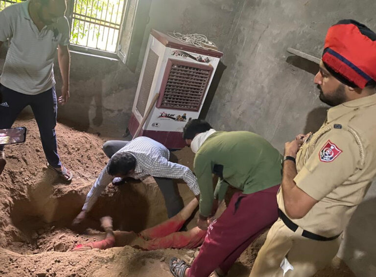 ਨਾਭਾ ਪੁਲੀਸ ਨੇ ਫ਼ੈਜ਼ਗੜ੍ਹ ਪਿੰਡ ‘ਚ ਇਕ 50 ਸਾਲਾ ਮਹਿਲਾ ਦੀ ਲਾਸ਼ ਬਰਾਮਦ ਕੀਤੀ ਜੋ ਕਿ ਦੋ ਦਿਨ ਪਹਿਲਾਂ ਉਸਦੇ ਪੁੱਤਰ ਵੱਲੋਂ ਹੀ ਕਤਲ ਕੀਤੇ ਜਾਣ ਮਗਰੋਂ ਕਮਰੇ ‘ਚ ਦਫ਼ਨਾ ਦਿੱਤੀ ਗਈ ਸੀ। ਪੁਲੀਸ ਮੁਤਾਬਕ ਮੁਲਜ਼ਮ ਸਾਬਰ ਅਲੀ ਉਮਰ 22 ਸਾਲ ਨੇ ਆਪਣੇ ਚਾਚੇ ਦੇ ਮੁੰਡੇ ਨੂੰ ਇਸ ਬਾਰੇ ਆਪ ਹੀ ਦੱਸਿਆ। ਨਾਭਾ ਡੀ.ਐੱਸ.ਪੀ. ਦਵਿੰਦਰ ਅਤਰੀ ਨੇ ਦੱਸਿਆ ਕਿ ਤਹਿਸੀਲਦਾਰ ਦੀ ਹਾਜ਼ਰੀ ‘ਚ ਲਾਸ਼ ਨੂੰ ਜ਼ਮੀਨ ‘ਚੋਂ ਕੱਢਿਆ ਗਿਆ ਤੇ ਸਾਬਰ ਅਲੀ ਨੂੰ ਗ੍ਰਿਫ਼ਤਾਰ ਕਰਕੇ ਕੇਸ ਦਰਜ ਕਰ ਲਿਆ ਗਿਆ ਹੈ। ਉਨ੍ਹਾਂ ਮੁਤਾਬਕ ਸਾਬਰ ਅਲੀ ਆਪਣੀ ਮਾਤਾ ਕੋਲੋਂ ਜਾਇਦਾਦ ਦੀ ਮੰਗ ਕਰ ਰਿਹਾ ਸੀ ਤੇ ਗੁੱਸੇ ‘ਚ ਉਸਨੇ ਆਪਣੀ ਮਾਂ ਕਿਰਨਾ ਰਾਣੀ ਦੀ ਕੁਹਾੜੀ ਨਾਲ ਹੱਤਿਆ ਕਰ ਦਿੱਤੀ ਤੇ ਫਿਰ ਲਾਸ਼ ਨੂੰ ਉਸਦੇ ਕਮਰੇ ‘ਚ ਹੀ ਦਫਨਾ ਦਿੱਤਾ। ਪਿੰਡ ਦੇ ਸਰਪੰਚ ਜਸਵੰਤ ਸਿੰਘ ਨੇ ਦੱਸਿਆ ਕਿ ਮ੍ਰਿਤਕ ਕਿਰਨਾ ਰਾਣੀ ਤੇ ਉਸਦਾ ਪੁੱਤਰ ਸਾਬਰ ਅਲੀ ਲਗਭਗ 15-20 ਸਾਲ ਪਹਿਲਾਂ ਇਸ ਪਿੰਡ ‘ਚ ਦੂਜੇ ਵਿਆਹ ਮਗਰੋਂ ਆਏ ਸਨ। ਪਰ ਸਾਬਰ ਅਲੀ ਜ਼ਿਆਦਾਤਰ ਆਪਣੇ ਨਾਨਕੇ ਹੀ ਰਹਿੰਦਾ ਸੀ ਤੇ ਪਿੰਡ ‘ਚ ਉਸਦਾ ਕੋਈ ਖ਼ਾਸ ਸਹਿਚਾਰ ਨਹੀਂ ਹੈ। ਕੁਝ ਸਾਲ ਪਹਿਲਾਂ ਕਿਰਨਾ ਦੇ ਦੂਜੇ ਪਤੀ ਕਾਕਾ ਖਾਨ ਦੀ ਵੀ ਸੜਕ ਹਾਦਸੇ ‘ਚ ਮੌਤ ਹੋ ਗਈ ਸੀ ਤੇ ਕਿਰਨਾ ਘਰ ‘ਚ ਇਕੱਲੀ ਹੀ ਰਹਿੰਦੀ ਸੀ ਤੇ ਕਾਕਾ ਖਾਨ ਦਾ ਪਹਿਲੇ ਵਿਆਹ ਤੋਂ ਪੁੱਤਰ ਵੀ ਆਪਣੇ ਤਾਏ ਕੋਲ ਰਹਿਣ ਲੱਗ ਗਿਆ ਸੀ। ਡੀ.ਐੱਸ.ਪੀ. ਅਤਰੀ ਨੇ ਦੱਸਿਆ ਕਿ ਕਾਕਾ ਖਾਨ ਛੇ ਕਿੱਲੇ ਜ਼ਮੀਨ ਆਪਣੇ ਪਹਿਲੇ ਪੁੱਤਰ ਦੇ ਨਾਮ ਕਰ ਗਿਆ ਸੀ ਤੇ ਕਿਰਨਾ ਕੋਲ ਘਰ ਤੋਂ ਇਲਾਵਾ ਇਕ ਵਿੱਘੇ ਦੇ ਕਰੀਬ ਹੀ ਜ਼ਮੀਨ ਸੀ।