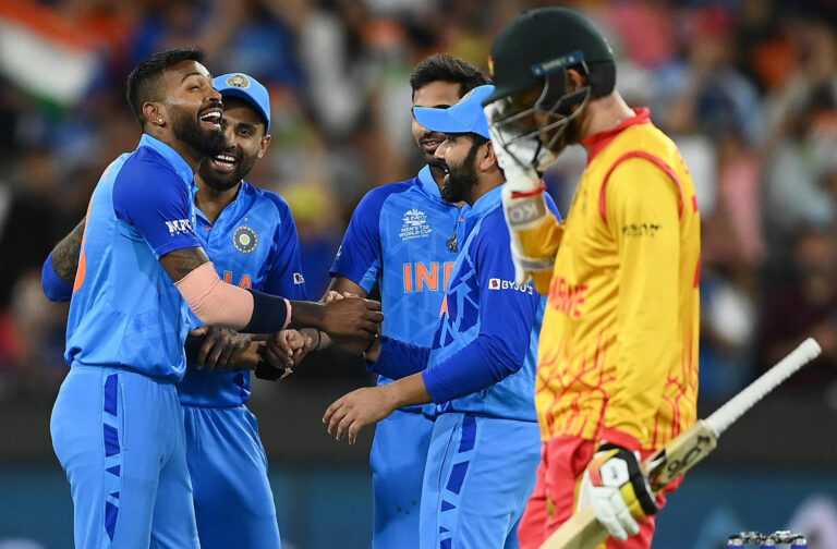 ਆਈ.ਸੀ.ਸੀ. ਟੀ-20 ਵਰਲਡ ਕੱਪ ਦੇ ਆਖਰੀ ਲੀਗ ਮੈਚ ‘ਚ ਅੱਜ ਮੈਲਬੌਰਨ ਵਿਖੇ ਇੰਡੀਆ ਤੇ ਜ਼ਿੰਬਾਬਵੇ ਆਹਮੋ-ਸਾਹਮਣਾ ਹੋਏ। ਇੰਡੀਆ ਨੇ ਇਹ ਮੈਚ 71 ਦੌੜਾਂ ਨਾਲ ਜਿੱਤ ਲਿਆ ਅਤੇ ਸੈਮੀਫਾਈਨਲ ‘ਚ ਪਹੁੰਚ ਗਿਆ। ਇੰਡੀਆ ਦਾ ਸੈਮੀਫਾਈਨਲ ‘ਚ ਮੁਕਾਬਲਾ ਹੁਣ ਇੰਗਲੈਂਡ ਦੀ ਟੀਮ ਨਾਲ 10 ਨਵੰਬਰ ਨੂੰ ਹੋਵੇਗਾ। ਇੰਡੀਆ ਨੇ ਟਾਸ ਜਿੱਤ ਕੇ ਪਹਿਲਾਂ ਬੱਲੇਬਾਜ਼ੀ ਕਰਨ ਦਾ ਫੈਸਲਾ ਕੀਤਾ। ਪਹਿਲਾਂ ਬੱਲੇਬਾਜ਼ੀ ਕਰਦੇ ਹੋਏ ਇੰਡੀਆ ਨੇ ਨਿਰਧਾਰਤ 20 ਓਵਰਾਂ ‘ਚ 5 ਵਿਕਟਾਂ ਦੇ ਨੁਕਸਾਨ ‘ਤੇ 186 ਦੌੜਾਂ ਬਣਾਈਆਂ। ਇਸ ਤਰ੍ਹਾਂ ਇੰਡੀਆ ਨੇ ਜ਼ਿੰਬਾਬਵੇ ਨੂੰ ਜਿੱਤ ਲਈ 187 ਦੌੜਾਂ ਦਾ ਟੀਚਾ ਦਿੱਤਾ ਹੈ। ਟੀਚੇ ਦਾ ਪਿੱਛਾ ਕਰਦੇ ਹੋਏ ਜ਼ਿੰਬਾਬਵੇ ਦੀ ਟੀਮ 17.2 ਓਵਰਾਂ ‘ਚ ਆਲ ਆਊਟ ਹੋ ਕੇ ਸਿਰਫ਼ 115 ਦੌੜਾਂ ਹੀ ਬਣਾ ਸਕੀ। ਸਿੱਟੇ ਵਜੋਂ ਇੰਡੀਆ 71 ਦੌੜਾਂ ਨਾਲ ਇਹ ਮੈਚ ਜਿੱਤ ਗਿਆ। ਮੈਚ ‘ਚ ਪਹਿਲਾਂ ਬੱਲੇਬਾਜ਼ੀ ਕਰਦੇ ਹੋਏ ਇੰਡੀਆ ਨੂੰ ਪਹਿਲਾ ਝਟਕਾ ਉਦੋਂ ਲੱਗਾ ਜਦੋਂ ਉਸ ਦਾ ਕਪਤਾਨ ਰੋਹਿਤ ਸ਼ਰਮਾ 15 ਦੌੜਾਂ ਦੇ ਨਿੱਜੀ ਸਕੋਰ ‘ਤੇ ਮੁਜ਼ਾਰਬਾਨੀ ਵੱਲੋਂ ਆਊਟ ਹੋ ਕੇ ਪਵੇਲੀਅਨ ਪਰਤ ਗਿਆ। ਇੰਡੀਆ ਨੂੰ ਦੂਜਾ ਝਟਕਾ ਉਦੋਂ ਲੱਗਾ ਜਦੋਂ ਵਿਰਾਟ ਕੋਹਲੀ 26 ਦੌੜਾਂ ਦੇ ਨਿੱਜੀ ਸਕੋਰ ‘ਤੇ ਸੀਨ ਵਿਲੀਅਮਸ ਵੱਲੋਂ ਆਊਟ ਹੋ ਗਏ। ਇੰਡੀਆ ਦੀ ਤੀਜੀ ਵਿਕਟ ਕੇ.ਐੱਲ. ਰਾਹੁਲ ਦੇ ਤੌਰ ‘ਤੇ ਡਿੱਗੀ। ਰਾਹੁਲ 51 ਦੌੜਾਂ ਦੇ ਨਿੱਜੀ ਸਕੋਰ ‘ਤੇ ਸਿਕੰਦਰ ਰਜ਼ਾ ਵੱਲੋਂ ਆਊਟ ਹੋਏ। ਇੰਡੀਆ ਦੀ ਚੌਥੀ ਵਿਕਟ ਰਿਸ਼ਭ ਪੰਤ ਦੇ ਤੌਰ ‘ਤੇ ਡਿੱਗੀ। ਪੰਤ 3 ਦੌੜਾਂ ਦੇ ਨਿੱਜੀ ਸਕੋਰ ‘ਤੇ ਸੀਨ ਵਿਲੀਅਮਸ ਦਾ ਸ਼ਿਕਾਰ ਬਣੇ। ਹਾਰਦਿਕ ਪੰਡਯਾ 18 ਦੌੜਾਂ ਬਣਾ ਆਊਟ ਹੋਏ। ਇਸ ਤੋਂ ਇਲਾਵਾ ਸੂਰਯਕੁਮਾਰ ਯਾਦਵ ਨੇ ਅਜੇਤੂ ਰਹਿੰਦੇ ਹੋਏ 6 ਚੌਕੇ ਤੇ 4 ਛੱਕਿਆਂ ਦੀ ਮਦਦ ਨਾਲ 61 ਦੌੜਾਂ ਦੀ ਸ਼ਾਨਦਾਰ ਪਾਰੀ ਖੇਡੀ। ਜ਼ਿੰਬਾਬਵੇ ਵੱਲੋਂ ਨਗਾਰਵਾ, ਮੁਜ਼ਰਬਾਨੀ ਅਤੇ ਸਿਕੰਦਰ ਰਜ਼ਾ ਨੇ 1-1 ਵਿਕਟ ਜਦਕਿ ਸੀਨ ਵਿਲੀਅਮਸ ਨੇ 2 ਵਿਕਟਾਂ ਝਟਕਾਈਆਂ।