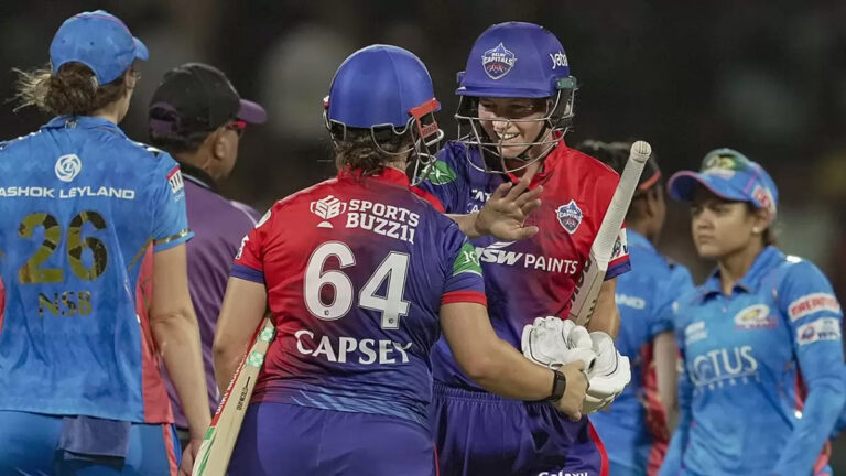 ਮਹਿਲਾ ਪ੍ਰੀਮੀਅਰ ਲੀਗ ਦੇ ਨਵੀਂ ਮੁੰਬਈ ਵਿਖੇ ਖੇਡੇ ਗਏ ਮੈਚ ‘ਚ ਦਿੱਲੀ ਕੈਪੀਟਲਸ ਨੇ ਮੁੰਬਈ ਇੰਡੀਅਨਜ਼ ਦੀ ਮਹਿਲਾ ਟੀਮ ਨੂੰ ਆਸਾਨੀ ਨਾਲ ਹਰਾ ਦਿੱਤਾ। ਮੁੰਬਈ ਇੰਡੀਅਨਜ਼ ਨੇ ਪਹਿਲਾਂ ਖੇਡਦਿਆਂ ਸਿਰਫ 109 ਦੌੜਾਂ ਬਣਾਈਆਂ ਸਨ। ਜਵਾਬ ‘ਚ ਦਿੱਲੀ ਦੀ ਕਪਤਾਨ ਮੇਗ ਲੈਨਿੰਗ ਨੇ 32, ਸ਼ੈਫਾਲੀ ਨੇ 33 ਅਤੇ ਅਲੀਸਾ ਕੈਪਸੀ ਨੇ 38 ਦੌੜਾਂ ਬਣਾ ਕੇ ਆਪਣੀ ਟੀਮ ਨੂੰ ਨੌਂ ਵਿਕਟਾਂ ਨਾਲ ਜਿੱਤ ਦਿਵਾਈ। ਹਾਲਾਂਕਿ ਮੈਚ ਦੀ ਸ਼ੁਰੂਆਤ ਮੁੰਬਈ ਇੰਡੀਅਨਜ਼ ਲਈ ਕਾਫੀ ਖਰਾਬ ਰਹੀ। ਸਲਾਮੀ ਬੱਲੇਬਾਜ਼ ਯਸਤਿਕਾ ਭਾਟੀਆ ਨੇ 1 ਅਤੇ ਹੇਲੀ ਮੈਥਿਊਜ਼ ਨੇ 5 ਦੌੜਾਂ ਬਣਾਈਆਂ। ਮੁੰਬਈ ਦਾ ਸਭ ਤੋਂ ਮਜ਼ਬੂਤ ਬੱਲੇਬਾਜ਼ ਨੈੱਟ ਸਿਵਰ ਬਰੰਟ ਗੋਲਡਨ ਡਕ ਬਣ ਗਿਆ। 10 ਦੌੜਾਂ ‘ਤੇ ਤਿੰਨ ਵਿਕਟਾਂ ਡਿੱਗਣ ਤੋਂ ਬਾਅਦ ਕਪਤਾਨ ਹਰਮਨਪ੍ਰੀਤ ਕੌਰ ਨੇ ਕੁਝ ਚੰਗੇ ਸ਼ਾਟ ਲਗਾ ਕੇ ਸਕੋਰ ਨੂੰ ਅੱਗੇ ਵਧਾਇਆ। ਅਮੇਲੀਆ ਕੇਰ 8 ਦੌੜਾਂ ਬਣਾ ਕੇ ਆਊਟ ਹੋਣ ਤੋਂ ਬਾਅਦ ਹਰਮਨਪ੍ਰੀਤ ਵੀ 23 ਦੌੜਾਂ ‘ਤੇ ਸ਼ਿਖਾ ਪਾਂਡੇ ਦਾ ਸ਼ਿਕਾਰ ਹੋ ਗਈ। ਇਸ ਦੌਰਾਨ ਪੂਜਾ ਵਸਤਰਕਾਰ ਨੇ 19 ਗੇਂਦਾਂ ‘ਚ 26 ਦੌੜਾਂ ਬਣਾਈਆਂ। ਅੰਤ ‘ਚ ਈਸੀ ਵੋਂਗ ਅਤੇ ਅਮਨਜੋਤ ਕੌਰ ਨੇ ਦੋ-ਦੋ ਹਿੱਟ ਮਾਰ ਕੇ ਸਕੋਰ ਨੂੰ 109 ਤੱਕ ਪਹੁੰਚਾਇਆ। ਜਵਾਬ ‘ਚ ਕਪਤਾਨ ਮੇਗ ਲੈਨਿੰਗ ਨੇ ਸ਼ੈਫਾਲੀ ਵਰਮਾ ਨਾਲ ਮਿਲ ਕੇ ਦਿੱਲੀ ਕੈਪੀਟਲਜ਼ ਤੋਂ ਸ਼ੁਰੂਆਤੀ ਕ੍ਰਮ ‘ਤੇ ਆਪਣੀ ਟੀਮ ਨੂੰ ਤੂਫਾਨੀ ਸ਼ੁਰੂਆਤ ਦਿੱਤੀ। ਲੈਨਿੰਗ ਨੇ ਜਿੱਥੇ 22 ਗੇਂਦਾਂ ‘ਚ ਚਾਰ ਚੌਕਿਆਂ ਅਤੇ ਇਕ ਛੱਕੇ ਦੀ ਮਦਦ ਨਾਲ 32 ਦੌੜਾਂ ਬਣਾਈਆਂ, ਉਥੇ ਹੀ ਸ਼ੈਫਾਲੀ ਨੇ 15 ਗੇਂਦਾਂ ‘ਚ 6 ਚੌਕਿਆਂ ਅਤੇ ਇਕ ਛੱਕੇ ਦੀ ਮਦਦ ਨਾਲ 33 ਦੌੜਾਂ ਬਣਾਈਆਂ। ਐਲੀਸਾ ਕੈਪਸੀ ਨੇ 17 ਗੇਂਦਾਂ ‘ਚ ਇਕ ਚੌਕੇ ਅਤੇ ਪੰਜ ਛੱਕਿਆਂ ਦੀ ਮਦਦ ਨਾਲ 38 ਦੌੜਾਂ ਬਣਾਈਆਂ ਅਤੇ ਦਿੱਲੀ ਨੂੰ ਨੌਂ ਓਵਰਾਂ ‘ਚ ਜਿੱਤ ਦਿਵਾਈ।