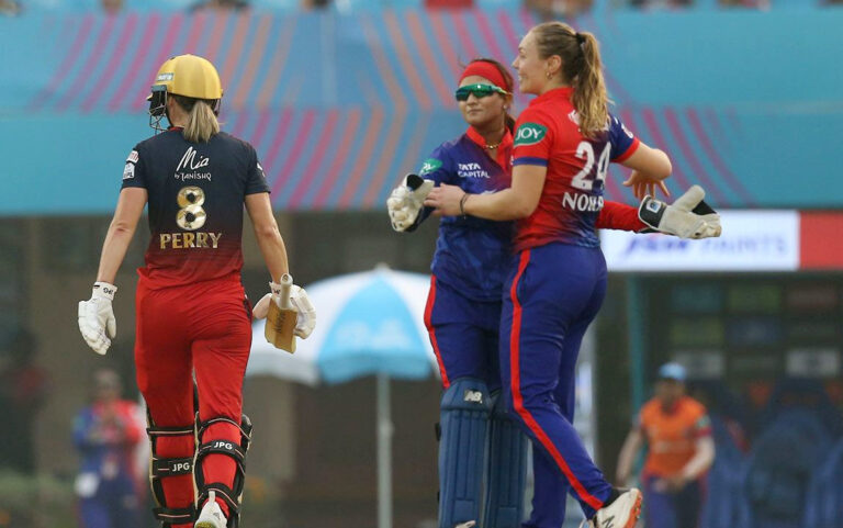 ਦਿੱਲੀ ਕੈਪੀਟਲ ਨੇ ਮਹਿਲਾ ਪ੍ਰੀਮੀਅਰ ਲੀਗ ਦੇ ਇਕ ਮੈਚ ‘ਚ ਰਾਇਲ ਚੈਲੰਜਰਜ਼ ਬੈਂਗਲੁਰੂ ਨੂੰ 60 ਦੌੜਾਂ ਨਾਲ ਹਰਾ ਸ਼ਾਨਦਾਰ ਸ਼ੁਰੂਆਤ ਕੀਤੀ। ਕਪਤਾਨ ਮੈਗ ਲੈਨਿੰਗ (72) ਤੇ ਸ਼ੈਫਾਲੀ ਵਰਮਾ (84) ਦੇ ਧਮਾਕੇਦਾਰ ਅਰਧ ਸੈਂਕੜਿਆਂ ਤੋਂ ਬਾਅਦ ਤਾਰਾ ਨੌਰਿਸ (29 ਦੌੜਾਂ ‘ਤੇ 5 ਵਿਕਟਾਂ) ਦੇ ਪੰਜੇ ਦੀ ਬਦੌਲਤ ਇਹ ਜਿੱਤ ਸੰਭਵ ਹੋਈ। ਲੈਨਿੰਗ-ਸ਼ੈਫਾਲੀ ਦੀ ਸਲਾਮ ਜੋੜੀ ਨੇ ਪਹਿਲੀ ਵਿਕਟ ਲਈ ਤਾਬੜਤੋੜ 162 ਦੌੜਾਂ ਦੀ ਸਾਂਝੇਦਾਰੀ ਕਰਕੇ ਇਸ ਜਿੱਤ ਦੀ ਨੀਂਹ ਰੱਖੀ। ਸ਼ੈਫਾਲੀ ਨੇ 45 ਗੇਂਦਾਂ ‘ਤੇ 10 ਚੌਕਿਆ ਤੇ 4 ਛੱਕਿਆਂ ਦੇ ਨਾਲ 84 ਦੌੜਾਂ ਬਣਾਈਆਂ, ਜਦਕਿ ਲੈਨਿੰਗ ਨੇ 43 ਗੇਂਦਾਂ ‘ਤੇ 14 ਚੌਕਿਆਂ ਨਾਲ 72 ਦੌੜਾਂ ਦੀ ਕਪਤਾਨੀ ਪਾਰੀ ਖੇਡੀ। ਦੋਵਾਂ ਸਲਾਮੀ ਬੱਲੇਬਾਜ਼ਾਂ ਦੇ ਪੈਵੇਲੀਅਨ ਪਰਤਣ ਤੋਂ ਬਾਅਦ ਮਾਰਿਜਾਨੇ ਕਾਪ (ਅਜੇਤੂ 39) ਤੇ ਜੇਮਿਮਾ ਰੋਡ੍ਰਿਗੇਜ਼ (ਅਜੇਤੂ 22) ਨੇ ਦਿੱਲੀ ਨੂੰ ਵੱਡੇ ਸਕੋਰ ਤਕ ਪਹੁੰਚਾਇਆ। ਟੀਚੇ ਦਾ ਪਿੱਛਾ ਕਰਦੇ ਹੋਏ ਕਪਤਾਨ ਸਮ੍ਰਿਤੀ ਮੰਧਾਨਾ ਨੇ ਬੈਂਗਲੁਰੂ ਨੂੰ ਤੇਜ਼ ਸ਼ੁਰੂਆਤ ਦਿਵਾਈ ਹਾਲਾਂਕਿ ਉਸਦੀ ਵਿਕਟ ਡਿੱਗਣ ਤੋਂ ਬਾਅਦ ਟੀਮ ਮੈਚ ‘ਚੋਂ ਬਾਹਰ ਹੁੰਦੀ ਚਲੀ ਗਈ। ਸਮ੍ਰਿਤੀ ਨੇ 23 ਗੇਂਦਾਂ ‘ਚ 5 ਚੌਕਿਆਂ ਤੇ ਇਕ ਛੱਕੇ ਦੇ ਨਾਲ 35 ਦੌੜਾਂ ਬਣਾਈਆਂ ਜਦਕਿ ਐਲਿਸ ਪੈਰੀ ਨੇ ਵਿਚਾਲੇ ਦੇ ਓਵਰਾਂ ‘ਚ ਸੰਘਰਸ਼ ਕਰਦੇ ਹੋਏ 19 ਗੇਂਦਾਂ ‘ਤੇ 5 ਚੌਕਿਆਂ ਦੇ ਨਾਲ 31 ਦੌੜਾਂ ਦੀ ਪਾਰੀ ਖੇਡੀ। ਅਮਰੀਕਾ ਦੀ ਤਾਰਾ ਨੌਰਿਸ ਨੇ ਬੈਂਗਲੁਰੂ ਦੀ ਬੱਲੇਬਾਜ਼ੀ ਦੀ ਕਮਰ ਤੋੜਦੇ ਹੋਏ 4 ਓਵਰਾਂ ‘ਚ 29 ਦੌੜਾਂ ਕੇ 5 ਵਿਕਟਾਂ ਲਈਆਂ। ਐਲਿਸੇ ਕੈਪਸੀ ਨੇ 2, ਜਦਕਿ ਸ਼ਿਖਾ ਪਾਂਡੇ ਨੇ 1 ਵਿਕਟ ਲਈ। ਇਸ ਤੋਂ ਇਲਾਵਾ ਹੀਥਰ ਨਾਈਟ ਨੇ 34 ਤੇ ਮੇਗਨ ਸ਼ੱਟ ਨੇ ਅਜੇਤੂ 30 ਦੌੜਾਂ ਦਾ ਯੋਗਦਾਨ ਦਿੱਤਾ। ਹਾਲਾਂਕਿ ਇਸ ਸਮੇਂ ਤਕ ਬੈਂਗਲੁਰੂ ਮੈਚ ‘ਚੋਂ ਬਾਹਰ ਹੋ ਚੁੱਕੀ ਸੀ। ਬੈਂਗਲੁਰੂ ਨੇ ਟਾਸ ਜਿੱਤ ਕੇ ਗੇਂਦਬਾਜ਼ੀ ਚੁਣੀ ਪਰ ਲੈਨਿੰਗ ਤੇ ਸ਼ੈਫਾਲੀ ਦੀ ਜੋੜੀ ਨੇ ਜਲਦ ਹੀ ਉਸ ਦੇ ਫੈਸਲੇ ਨੂੰ ਗਲਤ ਸਾਬਤ ਕਰ ਦਿੱਤਾ। ਦੋਵਾਂ ਨੇ ਪਾਵਰਪਲੇਅ ਦਾ ਲਾਭ ਚੁੱਕਦੇ ਹੋਏ ਪਹਿਲੇ 6 ਓਵਰਾਂ ‘ਚ ਤਾਬੜਤੋੜ ਬੱਲੇਬਾਜ਼ੀ ਦੀ ਬਦੌਲਤ 57 ਦੌੜਾਂ ਜੋੜ ਲਈਆਂ। ਪਾਵਰਪਲੇਅ ਦੇ ਦੋ ਓਵਰਾਂ ਤਕ ਬੈਂਗਲੁਰੂ ਨੇ ਦਿੱਲੀ ਦੀਆਂ ਸਲਾਮੀ ਬੱਲੇਬਾਜ਼ਾਂ ਨੂੰ ਸ਼ਾਂਤ ਰੱਖਿਆ ਪਰ ਸ਼ੈਫਾਲੀ ਨੇ 9ਵੇਂ ਓਵਰ ‘ਚ ਆਪਣੇ ਹੱਥ ਖੋਲ੍ਹੇ ਕੇ 22 ਦੌੜਾਂ ਬਣਾਈਆਂ। ਉਸ ਨੇ ਅਗਲੇ ਓਵਰ ‘ਚ ਮੇਗਨ ਸ਼ੱਟ ਦੀ ਗੇਂਦ ‘ਤੇ ਇਕ ਦੌੜ ਲੈ ਕੇ ਆਪਣਾ ਅਰਧ ਸੈਂਕੜਾ ਪੂਰਾ ਕੀਤਾ ਤੇ ਟੀਮ ਨੂੰ 100 ਦੌੜਾਂ ਤਕ ਵੀ ਪਹੁੰਚਾਇਆ। ਲੈਨਿੰਗ ਨੇ ਵੀ ਅਗਲੇ ਓਵਰ ‘ਚ ਚੌਕਾ ਲਾ ਕੇ ਆਪਣੀਆਂ 50 ਦੌੜਾਂ ਪੂਰੀਆਂ ਕੀਤੀਆਂ। ਲੈਨਿੰਗ ਤੇ ਸ਼ੈਫਾਲੀ ਨੇ 14 ਓਵਰਾਂ ‘ਚ ਹੀ ਦਿੱਲੀ ਨੂੰ 150 ਦੌੜਾਂ ਦੇ ਪਾਰ ਪਹੁੰਚਾ ਦਿੱਤਾ। ਬੈਂਗਲੁਰੂ ਨੂੰ ਦਿੱਲੀ ਦੀ ਰਫਤਾਰ ਘੱਟ ਕਰਨ ਲਈ ਵਿਕਟ ਦੀ ਸਖਤ ਲੋੜ ਸੀ, ਜਿਹੜੀ ਉਸ ਸਮੇਂ ਹੀਥਰ ਨਾਈਟ ਨੇ ਦਿਵਾਈ। ਨਾਈਟ ਨੇ 15ਵੇਂ ਓਵਰ ‘ਚ ਲੈਨਿੰਗ ਤੇ ਸ਼ੈਫਾਲੀ ਦੋਵਾਂ ਨੂੰ ਪੈਵੇਲੀਅਨ ਭੇਜ ਦਿੱਤਾ ਪਰ ਇਸ ਤੋਂ ਬਾਅਦ ਵੀ ਦਿੱਲੀ ਦੀ ਰਨ ਰੇਟ ਨਹੀਂ ਰੁਕੀ। ਕਾਪ ਤੇ ਰੋਡ੍ਰਿਗੇਜ਼ ਨੇ ਤੀਜੀ ਵਿਕਟ ਲਈ 31 ਗੇਦਾਂ ‘ਤੇ 60 ਦੌੜਾਂ ਜੋੜਦੇ ਹੋਏ ਟੀਮ ਨੂੰ 223/2 ਦੇ ਸਕੋਰ ਤਕ ਪਹੁੰਚਾਇਆ। ਕਾਪ ਨੇ 17 ਗੇਂਦਾਂ ‘ਚ 3 ਚੌਕਿਆਂ ਤੇ 3 ਛੱਕਿਆਂ ਦੇ ਨਾਲ 22 ਦੌੜਾਂ ਦੀ ਅਜੇਤੂ ਪਾਰੀ ਖੇਡੀ।