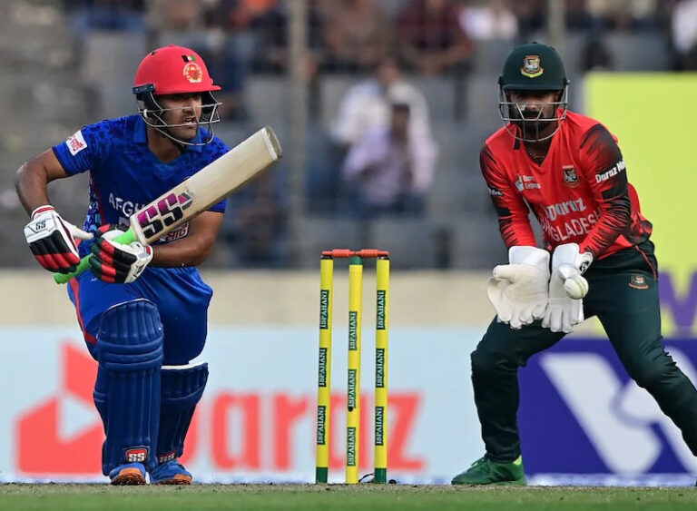 ਮੁਜ਼ਬੀਮ ਉਰ ਰਹਿਮਾਨ ਤੇ ਰਾਸ਼ਿਦ ਖਾਨ ਦੀ ਫਿਰਕੀ ਦੇ ਜਾਦੂ ਤੋਂ ਬਾਅਦ ਨਜ਼ੀਬਉੱਲ੍ਹਾ ਜ਼ਾਦਰਾਨ ਤੇ ਇਬ੍ਰਾਹਿਮ ਜ਼ਾਦਰਾਨ ਦੀਆਂ ਅਜੇਤੂ ਪਾਰੀਆਂ ਨਾਲ ਅਫਗਾਨਿਸਤਾਨ ਗਰੁੱਪ-ਬੀ ਮੈਚ ‘ਚ ਬੰਗਲਾਦੇਸ਼ ਨੂੰ 7 ਵਿਕਟਾਂ ਨਾਲ ਹਰਾ ਕੇ ਲਗਾਤਾਰ ਦੂਜੀ ਜਿੱਤ ਦੇ ਨਾਲ ਏਸ਼ੀਆ ਕੱਪ ਟੀ-20 ਕ੍ਰਿਕਟ ਟੂਰਨਾਮੈਂਟ ਦੇ ਸੁਪਰ-4 ‘ਚ ਜਗ੍ਹਾ ਬਣਾਉਣ ਵਾਲੀ ਪਹਿਲੀ ਟੀਮ ਬਣ ਗਿਆ। ਬੰਗਲਾਦੇਸ਼ ਦੀਆਂ 128 ਦੌੜਾਂ ਦੀ ਟੀਚੇ ਦਾ ਪਿੱਛਾ ਕਰਦਿਆਂ ਅਫਗਾਨਿਸਤਾਨ ਨੇ ਨਜ਼ੀਬਉੱਲ੍ਹਾ (17 ਗੇਂਦਾਂ ‘ਤੇ 6 ਛੱਕਿਆਂ ਤੇ 1 ਚੌਕੇ ਨਾਲ ਅਜੇਤੂ 43) ਤੇ ਇਬ੍ਰਾਹਿਮ (41 ਗੇਂਦਾਂ ‘ਤੇ 4 ਚੌਕਿਆਂ ਨਾਲ ਅਜੇਤੂ 42) ਵਿਚਾਲੇ ਚੌਥੀ ਵਿਕਟ ਲਈ 69 ਦੌੜਾਂ ਦੀ ਸਾਂਝੇਦਾਰੀ ਦੀ ਬਦੌਲਤ 9 ਗੇਂਦਾਂ ਬਾਕੀ ਰਹਿੰਦਿਆਂ 3 ਵਿਕਟਾਂ ‘ਤੇ 131 ਦੌੜਾਂ ਬਣਾ ਕੇ ਸ਼ਾਨਦਾਰ ਜਿੱਤ ਦਰਜ ਕਰ ਲਈ। ਨਜ਼ੀਬਉੱਲ੍ਹਾ ਨੇ ਮੋਸਾਦੇਕ ਹੁਸੈਨ ‘ਤੇ ਛੱਕਾ ਲਾ ਕੇ ਅਫਗਾਨਿਸਤਾਨ ਨੂੰ ਜਿੱਤ ਦਿਵਾਈ। ਇਸ ਤੋਂ ਪਹਿਲਾਂ ਮੁਜ਼ੀਬ ਨੇ 16 ਜਦਕਿ ਰਾਸ਼ਿਦ ਨੇ 22 ਦੌੜਾਂ ਦੇ ਕੇ 3-3 ਵਿਕਟਾਂ ਲਈਆਂ ਜਿਸ ਨਾਲ ਬੰਗਲਾਦੇਸ਼ ਦੀ ਟੀਮ 7 ਵਿਕਟਾਂ ‘ਤੇ 127 ਦੌੜਾਂ ਹੀ ਬਣਾ ਸਕੀ। ਮੋਸਾਦੇਕ ਹੁਸੈਨ ਨੇ (31 ਗੇਂਦਾਂ ‘ਤੇ 4 ਚੌਕੇ ਤੇ 1 ਛੱਕੇ ਨਾਲ ਅਜੇਤੂ 48) ਨੇ ਕਰੀਅਰ ਦੀ ਸਰਵਸ੍ਰੇਸ਼ਠ ਪਾਰੀ ਖੇਡੀ ਜਦਕਿ ਮਹਿਮੂਦਉੱਲ੍ਹਾ (25) ਨੇ ਉਪਯੋਗੀ ਯੋਗਦਾਨ ਦੇ ਕੇ ਬੰਗਲਾਦੇਸ਼ ਨੂੰ ਚੁਣੌਤੀਪੂਰਨ ਸਕੋਰ ਤਕ ਪਹੁੰਚਾਇਆ ਸੀ। ਟੀਚੇ ਦਾ ਪਿੱਛਾ ਕਰਦਿਆਂ ਅਫਗਾਨਿਸਤਾਨ ਦੀ ਸ਼ੁਰੂਆਤ ਵੀ ਚੰਗੀ ਨਹੀਂ ਰਹੀ। ਰਹਿਮਾਨ ਗੁਰਬਾਜ਼ (11) ਨੂੰ 6 ਦੌੜਾਂ ਦੇ ਸਕੋਰ ‘ਤੇ ਸ਼ਾਕਿਬ ਅਲ ਹਸਨ (31 ਦੌੜਾਂ ‘ਤੇ 1 ਵਿਕਟ) ਗੇਂਦ ‘ਤੇ ਜੀਵਨਦਾਨ ਮਿਲਿਆ ਪਰ ਉਹ ਇਸਦਾ ਫਾਇਦਾ ਨਹੀਂ ਚੁੱਕ ਸਕਿਆ ਤੇ ਬੰਗਲਾਦੇਸ਼ ਦੇ ਕਪਤਾਨ ਦੀ ਗੇਂਦ ‘ਤੇ ਹੀ ਸਟੰਪ ਹੋ ਗਿਆ। ਸਲਾਮੀ ਬੱਲੇਬਾਜ਼ ਹਜ਼ਰਤਉੱਲ੍ਹਾ ਜਜ਼ਈ (25) ਨੇ ਮੇਹਦੀ ਹਸਨ ‘ਤੇ ਦੋ ਚੌਕਿਆਂ ਦੇ ਨਾਲ ਪਾਵਰ ਪਲੇਅ ‘ਚ ਟੀਮ ਦਾ ਸਕੋਰ ਇਕ ਵਿਕਟ ‘ਤੇ 29 ਦੌੜਾਂ ਤਕ ਪਹੁੰਚਾਇਆ। ਇਬ੍ਰਾਹਿਮ ਨੇ ਵੀ ਤਾਸਕਿਨ ਅਹਿਮਦ ‘ਤੇ ਚੌਕਾ ਲਾਇਆ ਪਰ ਮੋਸਾਦੇਕ (12 ਦੌੜਾਂ ‘ਤੇ 1 ਵਿਕਟ) ਨੇ ਹਜ਼ਰਤਉੱਲ੍ਹਾ ਨੂੰ ਐੱਲ.ਬੀ.ਡਬਲਿਊ. ਕਰ ਦਿੱਤਾ। ਮੁਹੰਮਦ ਸੈਫਉੱਦੀਨ (27 ਦੌੜਾਂ ‘ਤੇ 1 ਵਿਕਟ) ਨੇ ਅਫਗਾਨਿਸਤਾਨ ਦੇ ਕਪਤਾਨ ਮੁਹੰਮਦ ਨਬੀ (8) ਨੂੰ ਐੱਲ.ਬੀ.ਡਬਲਿਊ. ਕਰ ਕੇ 13ਵੇਂ ਓਵਰ ‘ਚ ਅਫਗਾਨਿਸਤਾਨ ਦਾ ਸਕੋਰ 3 ਵਿਕਟਾਂ ‘ਤੇ 62 ਦੌੜਾਂ ਕਰ ਦਿੱਤਾ ਪਰ ਇਸ ਤੋਂ ਬਾਅਦ ਨਜ਼ੀਬਉੱਲ੍ਹਾ ਤੇ ਇਬ੍ਰਾਹਿਮ ਨੇ ਸ਼ਾਨਦਾਰ ਜਿੱਤ ਆਪਣੀ ਟੀਮ ਦੀ ਝੋਲੀ ‘ਚ ਪਾ ਦਿੱਤੀ।