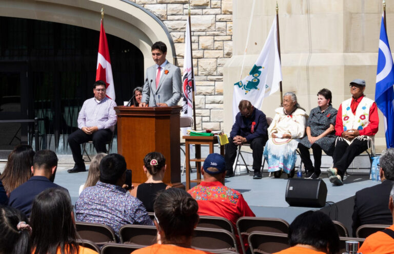 ਔਟਵਾ ਸਥਿਤ ਪਾਰਲੀਮੈਂਟ ਹਿੱਲ ‘ਤੇ ਸਰਵਾਈਵਰਜ਼ ਫਲੈਗ ਲਹਿਰਾਇਆ ਗਿਆ। ਇਸ ਸਮੇਂ ਕੈਨੇਡਾ ਦੇ ਪ੍ਰਧਾਨ ਮੰਤਰੀ ਜਸਟਿਨ ਟਰੂਡੋ ਉਚੇਚੇ ਤੌਰ ‘ਤੇ ਹਾਜ਼ਰ ਰਹੇ। ਇਹ ਕਦਮ ਕੈਨੇਡਾ ਸਰਕਾਰ ਨੇ ਦੇਸ਼ ਦੇ ਬਦਨਾਮ ਰਿਹਾਇਸ਼ੀ ਸਕੂਲਾਂ ‘ਚ ਜਾਣ ਲਈ ਮਜਬੂਰ ਸਵਦੇਸ਼ੀ ਲੋਕਾਂ ਦਾ ਸਨਮਾਨ ਹਿੱਤ ਚੁੱਕਿਆ। ਟਰੂਡੋ ਨਾਲ ਦੇਸ਼ ਭਰ ਦੇ ਰਿਹਾਇਸ਼ੀ ਸਕੂਲਾਂ ਦੇ ਬਚੇ ਹੋਏ ਲੋਕ ਇਸ ਆਯੋਜਨ ‘ਚ ਸ਼ਾਮਲ ਹੋਏ। ਕੈਨੇਡਾ ‘ਚ 1,50,000 ਤੋਂ ਵੱਧ ਮੂਲ ਬੱਚਿਆਂ ਨੂੰ 19ਵੀਂ ਸਦੀ ਤੋਂ ਲੈ ਕੇ 1970 ਦੇ ਦਹਾਕੇ ਤੱਕ ਉਨ੍ਹਾਂ ਦੇ ਘਰਾਂ ਅਤੇ ਸੱਭਿਆਚਾਰ ਦੇ ਪ੍ਰਭਾਵ ਤੋਂ ਵੱਖ ਕਰਨ ਦੀ ਕੋਸ਼ਿਸ਼ ‘ਚ ਸਰਕਾਰੀ ਫੰਡ ਪ੍ਰਾਪਤ ਈਸਾਈ ਸਕੂਲਾਂ ‘ਚ ਜਾਣ ਲਈ ਮਜਬੂਰ ਕੀਤਾ ਗਿਆ ਸੀ। ਇਸਦਾ ਉਦੇਸ਼ ਉਨ੍ਹਾਂ ਨੂੰ ਮੁੱਖ ਧਾਰਾ ਦੇ ਸਮਾਜ ‘ਚ ਈਸਾਈ ਬਣਾਉਣਾ ਅਤੇ ਇਸ ‘ਚ ਸ਼ਾਮਲ ਕਰਨਾ ਸੀ, ਜਿਸਨੂੰ ਪਿਛਲੀਆਂ ਕੈਨੇਡੀਅਨ ਸਰਕਾਰਾਂ ਉੱਤਮ ਮੰਨਦੀਆਂ ਸਨ। ਕਈ ਰਿਹਾਇਸ਼ੀ ਸਕੂਲਾਂ ਦੇ ਬਚੇ ਲੋਕਾਂ ਨੇ ਝੰਡੇ ਦੀ ਮਹੱਤਤਾ ਬਾਰੇ ਗੱਲ ਕੀਤੀ ਜਿਸ ‘ਚ ਜਿੰਮੀ ਡੂਰੋਚਰ, ਇਕ ਮੈਟਿਸ ਸਰਵਾਈਵਰ ਸੀ ਜੋ ਸਸਕੈਚਵਨ ਦੇ ਇਲੇ-ਏ-ਲਾ-ਕਰੌਸ ‘ਚ ਸੇਂਟ ਬਰੂਨੋ ਦੇ ਬੋਰਡਿੰਗ ਸਕੂਲ ‘ਚ ਪੜ੍ਹਿਆ ਸੀ। ਡੂਰੋਚਰ ਨੇ ਕਿਹਾ ਕਿ ਅੱਜ ਅਸੀਂ ਇਨ੍ਹਾਂ ਬਸਤੀਵਾਦੀ ਇਮਾਰਤਾਂ ‘ਤੇ ਸਰਵਾਈਵਰਜ਼ ਦਾ ਝੰਡਾ ਉੱਚਾ ਚੁੱਕਦੇ ਹਾਂ, ਜਿੱਥੇ ਸੰਸਦ ਮੈਂਬਰ ਹੁਣ ਸਾਡੀਆਂ ਸੱਚਾਈਆਂ ਨੂੰ ਸੁਣ ਰਹੇ ਹਨ ਅਤੇ ਸੁਲ੍ਹਾ-ਸਫਾਈ ਲਈ ਮਿਲ ਕੇ ਕੰਮ ਕਰਨ ਦੀ ਕੋਸ਼ਿਸ਼ ਕਰ ਰਹੇ ਹਨ। ਝੰਡਾ ਪਾਰਲੀਮੈਂਟ ਹਿੱਲ ‘ਤੇ 2024 ਤੱਕ ਲਹਿਰਾਇਆ ਜਾਵੇਗਾ ਜਦੋਂ ਇਸ ਦੇ ਸਥਾਈ ਘਰ ਬਾਰੇ ਫ਼ੈਸਲਾ ਕੀਤਾ ਜਾਵੇਗਾ। ਟਰੂਡੋ ਨੇ ਰਿਹਾਇਸ਼ੀ ਸਕੂਲਾਂ ਨੂੰ ਕੈਨੇਡੀਅਨ ਇਤਿਹਾਸ ਦਾ ਇਕ ‘ਸ਼ਰਮਨਾਕ’ ਹਿੱਸਾ ਦੱਸਿਆ ਅਤੇ ਕਿਹਾ ਕਿ ਸਰਵਾਈਵਰਜ਼ ਫਲੈਗ ਕੈਨੇਡੀਅਨਾਂ ਲਈ ਇਕ ਸਦੀ ਤੋਂ ਵੱਧ ਸਮੇਂ ‘ਚ ਸਰਕਾਰ ਦੁਆਰਾ ਫੰਡ ਪ੍ਰਾਪਤ, ਚਰਚ ਦੁਆਰਾ ਸੰਚਾਲਿਤ ਸੰਸਥਾਵਾਂ ‘ਚ ਕੀ ਵਾਪਰਿਆ, ਨੂੰ ਯਾਦ ਰੱਖਣ ਦੇ ਇਕ ਤਰੀਕੇ ਵਜੋਂ ਕੰਮ ਕਰੇਗਾ। ਟਰੂਡੋ ਨੇ ਕਿਹਾ ਕਿ ਇਹ ਝੰਡਾ ਯਾਦ ਦਾ ਪ੍ਰਗਟਾਵਾ ਹੈ। ਇਹ ਸਾਰੇ ਬਚੇ ਲੋਕਾਂ ਅਤੇ ਸਾਰੀਆਂ ਜ਼ਿੰਦਗੀਆਂ ਦਾ ਸਨਮਾਨ ਕਰਨ ਲਈ ਹੈ ਜੋ ਰਿਹਾਇਸ਼ੀ ਸਕੂਲ ਪ੍ਰਣਾਲੀ ਦੁਆਰਾ ਪ੍ਰਭਾਵਿਤ ਹੋਏ ਹਨ। ਪੋਪ ਫਰਾਂਸਿਸ ਨੇ ਪਿਛਲੇ ਮਹੀਨੇ ਕੈਨੇਡਾ ‘ਚ ਸਕੂਲਾਂ ‘ਚ ਕੈਥੋਲਿਕ ਚਰਚ ਦੀ ਭੂਮਿਕਾ ਲਈ ਮੁਆਫੀ ਮੰਗੀ ਸੀ। ਹਾਲਾਂਕਿ ਇਸ ਤੋਂ ਪਹਿਲਾਂ ਟਰੂਡੋ ਵੀ ਇਸ ਲਈ ਮੁਆਫੀ ਮੰਗ ਚੁੱਕੇ ਹਨ।
