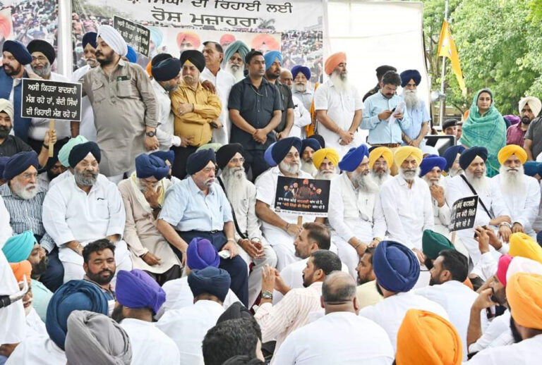 ਦਿੱਲੀ ਦੇ ਜੰਤਰ ਮੰਤਰ ਵਿਖੇ ਅੱਜ ਸ਼੍ਰੋਮਣੀ ਅਕਾਲੀ ਦਲ ਵੱਲੋਂ ਬੰਦੀ ਸਿੰਘਾਂ ਦੀ ਰਿਹਾਈ ਲਈ ਵਿਰੋਧ ਪ੍ਰਦਰਸ਼ਨ ਕੀਤਾ ਗਿਆ। ਸ਼੍ਰੋਮਣੀ ਅਕਾਲੀ ਦਲ ਦੇ ਪ੍ਰਧਾਨ ਸੁਖਬੀਰ ਸਿੰਘ ਬਾਦਲ ਦੀ ਅਗਵਾਈ ਹੇਠ ਪਾਰਟੀ ਧਰਨੇ ’ਚ ਸਮੁੱਚੀ ਲੀਡਰਸ਼ਿਪ ਸ਼ਾਮਲ ਹੋਈ ਪਰ ਹਲਕਾ ਦਾਖਾ ਦੇ ਵਿਧਾਇਕ ਮਨਪ੍ਰੀਤ ਸਿੰਘ ਇਯਾਲੀ ਸ਼ਾਮਲ ਨਹੀਂ ਹੋਏ। ਉਨ੍ਹਾਂ ਦੋ ਦਿਨ ਪਹਿਲਾਂ ਹੀ ਰਾਸ਼ਟਰਪਤੀ ਚੋਣ ਦਾ ਪਾਰਟੀ ਫ਼ੈਸਲੇ ਦੇ ਉਲਟ ਜਾ ਕੇ ਬਾਈਕਾਟ ਕਰਦਿਆਂ ਅਕਾਲੀ ਦਲ ਨੂੰ ਕਈ ਸੁਝਾਅ ਪੇਸ਼ ਕੀਤੇ ਸਨ ਜਿਸਨੂੰ ਬਗ਼ਾਵਤ ਵਜੋਂ ਦੇਖਿਆ ਗਿਆ। ਧਰਨੇ ਨੂੰ ਸੰਬੋਧਨ ਕਰਦਿਆਂ ਸੁਖਬੀਰ ਸਿੰਘ ਬਾਦਲ ਨੇ ਕਿਹਾ ਕਿ ਸਰਕਾਰ ਤੋਂ ਬੰਦੀ ਸਿੰਘਾਂ ਦੀ ਰਿਹਾਈ ਮੰਗ ਰਹੇ ਹਾਂ ਜਿਨ੍ਹਾਂ ਨੂੰ ਸਜ਼ਾਵਾਂ ਪੂਰੀਆਂ ਹੋਣ ਦੇ ਬਾਵਜੂਦ ਜੇਲ੍ਹਾਂ ’ਚ ਡੱਕਿਆ ਹੋਇਾ ਹੈ। ਸਰਕਾਰ ਯੂ-ਟਿਊਬ ਤੋਂ ‘ਰਿਹਾਈ’ ਗਾਣਾ ਬੈਨ ਕਰ ਸਕਦੀ ਹੈ ਪਰ ਸਿੰਘਾਂ ਅਤੇ ਪੰਜਾਬੀਆਂ ਦੇ ਦਿਲਾਂ ’ਚੋਂ ਬੈਨ ਨਹੀਂ ਕਰ ਸਕਦੀ। ਉਨ੍ਹਾਂ ਕਿਹਾ ਕਿ ਸਿੱਖ ਕੌਮ ਨੇ ਦੇਸ਼ ਵਾਸਤੇ ਜਾਨਾਂ ਕੁਰਬਾਨ ਕੀਤੀਆਂ ਹਨ। ਸੁਖਬੀਰ ਬਾਦਲ ਨੇ ਕਿਹਾ ਕਿ ਦੇਸ਼ ਦੀ ਆਜ਼ਾਦੀ ਦੀ ਲਡ਼ਾਈ ਵਾਸਤੇ ਸਭ ਤੋਂ ਵੱਧ ਕੁਰਬਾਨੀਆਂ ਸਾਡੇ ਭਰਾਵਾਂ ਨੇ ਦਿੱਤੀਆਂ ਹਨ। ਉਨ੍ਹਾਂ ਕਿਹਾ ਕਿ ਬੰਦੀ ਸਿੰਘਾਂ ਨੇ ਜੋ ਕੀਤਾ ਹੈ ਉਸ ਦੀ ਸਜ਼ਾ ਉਨ੍ਹਾਂ ਨੇ ਭੁਗਤ ਲਈ ਹੈ ਪਰ ਫਿਰ ਵੀ ਉਨ੍ਹਾਂ ਨੂੰ ਛੱਡਣ ਦਾ ਕੋਈ ਨਾਂ ਨਹੀਂ ਲੈ ਰਿਹਾ। ਉਨ੍ਹਾਂ ਕਿਹਾ ਕਿ ਬੰਦੀ ਸਿੰਘਾਂ ਦੀ ਰਿਹਾਈ ਵਾਲੀ ਫਾਈਲ ਦਿੱਲੀ ਦੇ ਮੁੱਖ ਮੰਤਰੀ ਕੇਜਰੀਵਾਲ ਕੋਲ 7 ਮਹੀਨਿਆਂ ਤੋਂ ਪਈ ਹੈ ਪਰ ਇਸ ’ਤੇ ਕੋਈ ਫ਼ੈਸਲਾ ਨਹੀਂ ਲਿਆ ਗਿਆ। ਉਨ੍ਹਾਂ ਕਿਹਾ ਕਿ ਕਈ ਲੋਕ ਸਾਡੀ ਕੌਮ ਦੀ ਤਾਕਤ ਨੂੰ ਘਟਾਉਣਾ ਚਾਹੁੰਦੇ ਹਨ। ਅੱਜ ਵੱਡੀਆਂ ਤਾਕਤਾਂ ਅਕਾਲੀ ਦਲ ਨੂੰ ਕਮਜ਼ੋਰ ਕਰਨ ’ਚ ਲੱਗੀਆਂ ਹੋਈਆਂ ਹਨ ਪਰ ਸ਼੍ਰੋਮਣੀ ਅਕਾਲੀ ਦਲ ਕੋਈ ਮਾਮੂਲੀ ਪਾਰਟੀ ਨਹੀਂ ਹੈ। ਉਨ੍ਹਾਂ ਕਿਹਾ ਕਿ ਅਕਾਲੀ ਦਲ ਦਾ ਮਕਸਦ ਕੌਮ ਦੀ ਚਡ਼੍ਹਦੀ ਕਲਾ ਅਤੇ ਪੰਜਾਬੀਆਂ ਵਾਸਤੇ ਲਡ਼ਾਈ ਲਡ਼ਨਾ ਹੈ। ਉਨ੍ਹਾਂ ਕਿਹਾ ਕਿ ਅਕਾਲੀ ਦਲ ਸਰਕਾਰਾਂ ਵਾਸਤੇ ਨਹੀਂ ਲਡ਼ਦੀ। ਉਨ੍ਹਾਂ ਕਿਹਾ ਕਿ ਜਦੋਂ-ਜਦੋਂ ਅਕਾਲੀ ਦਲ ਸੱਤਾ ’ਚ ਆਇਆ ਹੈ, ਉਦੋਂ ਹੀ ਪੰਜਾਬ ਦਾ ਵਿਕਾਸ ਹੋਇਆ ਹੈ। ਧਰਨੇ ’ਚ ਸ਼੍ਰੋਮਣੀ ਕਮੇਟੀ ਪ੍ਰਧਾਨ ਹਰਜਿੰਦਰ ਸਿੰਘ ਧਾਮੀ, ਬਲਵਿੰਦਰ ਸਿੰਘ ਭੂੰਦਡ਼, ਹਰਸਿਮਰਤ ਕੌਰ ਬਾਦਲ, ਪਰਮਜੀਤ ਸਿੰਘ ਸਰਨਾ, ਮਨਜੀਤ ਸਿੰਘ ਜੀਕੇ, ਜਗਮੀਤ ਸਿੰਘ ਬਰਾਡ਼, ਐੱਸ.ਆਰ. ਕਲੇਰ, ਅਮਰਜੀਤ ਸਿੰਘ ਚਾਵਲਾ, ਰਜਿੰਦਰ ਸਿੰਘ ਮਹਿਤਾ, ਫੈਡਰੇਸ਼ਨ ਪ੍ਰਧਾਨ ਗੁਰਚਰਨ ਸਿੰਘ ਗਰੇਵਾਲ ਆਦਿ ਸ਼ਾਮਲ ਹੋਏ।