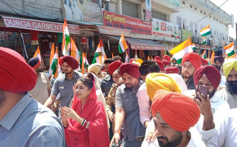 ਮੁੱਖ ਮੰਤਰੀ ਭਗਵੰਤ ਮਾਨ ਦੇ ਹਲਕੇ ਧੂਰੀ ਵਿਖੇ 15 ਅਗਸਤ ਨੂੰ ਮਨਾਏ ਜਾ ਰਹੇ ਆਜ਼ਾਦੀ ਦਿਹਾੜੇ ਦੇ ਮੱਦੇਨਜ਼ਰ ਕੱਢੀ ਗਈ ‘ਤਿਰੰਗਾ ਯਾਤਰਾ’ ਦੀ ਅਗਵਾਈ ਪੰਜਾਬ ਦੇ ਮੁੱਖ ਮੰਤਰੀ ਭਗਵੰਤ ਮਾਨ ਦੀ ਧਰਮਪਤਨੀ ਡਾ. ਗੁਰਪ੍ਰੀਤ ਕੌਰ ਮਾਨ ਨੇ ਕੀਤੀ। ਇਸ ਮੌਕੇ ਉਨਾਂ ਦੇ ਭੈਣ ਮਨਪ੍ਰੀਤ ਕੌਰ ਵੀ ਵਿਸ਼ੇਸ ਤੋਰ ‘ਤੇ ਹਾਜ਼ਰ ਰਹੇ। ਸ਼ਹਿਰ ਦੇ ਬਾਰੂਮੱਲ ਧਰਮਸ਼ਾਲਾ ਤੋਂ ਸ਼ੁਰੂ ਹੋਈ ਇਹ ‘ਤਿਰੰਗਾ ਯਾਤਰਾ’ ਵਿੱਚ ਇਲਾਕੇ ਦੀਆਂ ਔਰਤਾਂ ਅਤੇ ਪੰਚਾਂ, ਸਰਪੰਚਾਂ, ਨਗਰ ਕੌਸਲਰਾਂ ਨੇ ਵੱਡੀ ਗਿਣਤੀ ‘ਚ ਸ਼ਿਰਕਤ ਕੀਤੀ ਅਤੇ ਵਰਕਰਾਂ ਨੇ ‘ਭਾਰਤ ਮਾਤਾ ਕੀ ਜੈ ਅਤੇ ਇੰਨਕਲਾਬ ਜਿੰਦਾਬਾਦ’ ਦੇ ਨਾਅਰੇ ਲਗਾਏ। ਰਸਤੇ ‘ਚ ਥਾਂ-ਥਾਂ ਵਪਾਰੀਆਂ ਨੇ ਫੁੱਲਾਂ ਦੀ ਵਰਖਾ ਨਾਲ ਸਵਾਗਤ ਕੀਤਾ। ਇਸ ਮੌਕੇ ਮੁੱਖ ਮੰਤਰੀ ਭਗਵੰਤ ਮਾਨ ਦੀ ਪਤਨੀ ਡਾ. ਗੁਰਪ੍ਰੀਤ ਕੌਰ ਨੇ ਸਮੁੱਚੇ ਹਲਕਾ ਨਿਵਾਸੀਆਂ ਨੂੰ ਅਜਾਦੀ ਦਿਹਾੜੇ ਦੀ ਵਧਾਈ ਦਿੰਦਿਆਂ ਹਲਕੇ ਦੀ ਚੜ੍ਹਦੀਕਲਾ ਅਤੇ ਤਰੱਕੀ ਲਈ ਅਰਦਾਸ ਵੀ ਕੀਤੀ। ਇਸ ਮੌਕੇ ਧੂਰੀ ਦਫ਼ਤਰ ਦੇ ਇੰਚਾਰਜ ਉਂਕਾਰ ਸਿੰਘ ਸਿੱਧੂ, ਜਿਲਾ ਪ੍ਰਧਾਨ ਗੁਰਮੇਲ ਸਿੰਘ ਘਰਾਚੋਂ, ਘੱਟ ਗਿਣਤੀ ਸੈੱਲ ਦੇ ਜ਼ਿਲ੍ਹਾ ਪ੍ਰਧਾਨ ਡਾ. ਅਨਵਰ ਭਸੌੜ, ਦਲਵੀਰ ਸਿੰਘ ਢਿੱਲੋਂ, ਰਾਜਵੰਤ ਸਿੰਘ ਘੁੱਲੀ, ਸਤਿੰਦਰ ਸਿੰਘ ਚੱਠਾ, ਅਮਰਦੀਪ ਸਿੰਘ ਧਾਂਦਰਾ ਆਦਿ ਨੇ ਵੀ ਸ਼ਿਰਕਤ ਕੀਤੀ।