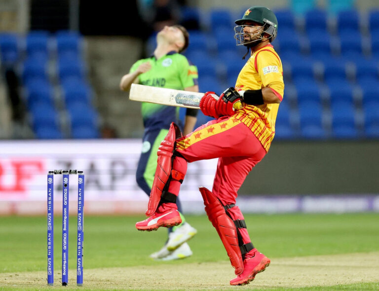 ਟੀ-20 ਵਰਲਡ ਕੱਪ ਦੇ ਇਕ ਮੁਕਾਬਲੇ ‘ਚ ਸਿਕੰਦਰ ਰਜ਼ਾ (82 ਦੌੜਾਂ, ਇਕ ਵਿਕਟ) ਦੇ ਆਲਰਾਊਂਡਰ ਪ੍ਰਦਰਸ਼ਨ ਅਤੇ ਬਲੇਸਿੰਗ ਮੁਜਰਬਜ਼ਾਨੀ (15/3) ਦੀ ਤਿੱਖੀ ਗੇਂਦਬਾਜ਼ੀ ਦੀ ਬਦੌਲਤ ਜ਼ਿੰਬਾਬਵੇ ਨੇ ਆਇਰਲੈਂਡ ਨੂੰ 31 ਦੌੜਾਂ ਨਾਲ ਹਰਾ ਦਿੱਤਾ। ਜ਼ਿੰਬਾਬਵੇ ਨੇ ਗਰੁੱਪ ਬੀ ਦੇ ਆਪਣੇ ਪਹਿਲੇ ਮੈਚ ‘ਚ ਆਇਰਲੈਂਡ ਨੂੰ 175 ਦੌੜਾਂ ਦਾ ਟੀਚਾ ਦਿੱਤਾ ਹੈ। ਜਵਾਬ ‘ਚ ਆਇਰਲੈਂਡ ਦੀ ਟੀਮ 143 ਦੌੜਾਂ ਹੀ ਬਣਾ ਸਕੀ। ਆਇਰਲੈਂਡ ਨੇ ਟਾਸ ਜਿੱਤ ਕੇ ਗੇਂਦਬਾਜ਼ੀ ਕਰਦੇ ਹੋਏ ਸਲਾਮੀ ਬੱਲੇਬਾਜ਼ ਰੇਗਿਸ ਚੱਕਾਬਵਾ ਨੂੰ ਪਾਰੀ ਦੀ ਪਹਿਲੀ ਹੀ ਗੇਂਦ ‘ਤੇ ਆਊਟ ਕੀਤਾ। ਕ੍ਰੇਗ ਇਰਵਿਨ ਅਤੇ ਵੇਸਲੇ ਮਧਵੇਰੇ ਨੇ ਦੂਜੀ ਵਿਕਟ ਲਈ 37 ਦੌੜਾਂ ਜੋੜੀਆਂ ਪਰ ਦੋਵੇਂ 37 ਦੌੜਾਂ ਦੇ ਕੁੱਲ ਸਕੋਰ ‘ਤੇ ਆਊਟ ਹੋ ਗਏ। ਪੰਜਵੇਂ ਨੰਬਰ ‘ਤੇ ਬੱਲੇਬਾਜ਼ੀ ਕਰਨ ਆਏ ਰਜ਼ਾ ਨੇ ਫਿਰ ਜ਼ਿੰਬਾਬਵੇ ਦੀ ਪਾਰੀ ਨੂੰ ਅੱਗੇ ਵਧਾਇਆ ਅਤੇ 48 ਗੇਂਦਾਂ ‘ਤੇ ਪੰਜ ਚੌਕਿਆਂ ਅਤੇ ਪੰਜ ਛੱਕਿਆਂ ਦੀ ਮਦਦ ਨਾਲ 82 ਦੌੜਾਂ ਬਣਾਈਆਂ। ਇਸ ਤੋਂ ਇਲਾਵਾ ਸ਼ਾਨ ਵਿਲੀਅਮਜ਼ ਨੇ 12 (11) ਦੌੜਾਂ, ਮਿਲਟਨ ਸ਼ੁੰਬਾ ਨੇ 16 (14) ਦੌੜਾਂ ਜਦਕਿ ਲਿਊਕ ਜੋਂਗਵੇ ਨੇ 20 (10) ਦੌੜਾਂ ਦਾ ਯੋਗਦਾਨ ਦਿੱਤਾ। ਆਇਰਲੈਂਡ ਵਲੋਂ ਜੋਸ਼ੂਆ ਲਿਟਲ ਨੇ ਚਾਰ ਓਵਰਾਂ ‘ਚ 24 ਦੌੜਾਂ ਦੇ ਕੇ ਤਿੰਨ ਵਿਕਟਾਂ ਲਈਆਂ ਜਦੋਂਕਿ ਮਾਰਕ ਅਡਾਇਰ ਨੇ (ਚਾਰ ਓਵਰ, 39 ਦੌੜਾਂ) ਅਤੇ ਸਿਮੀ ਸਿੰਘ (ਤਿੰਨ ਓਵਰ, 31 ਦੌੜਾਂ) ਨੇ ਦੋ-ਦੋ ਵਿਕਟਾਂ ਹਾਸਲ ਕੀਤੀਆਂ।
