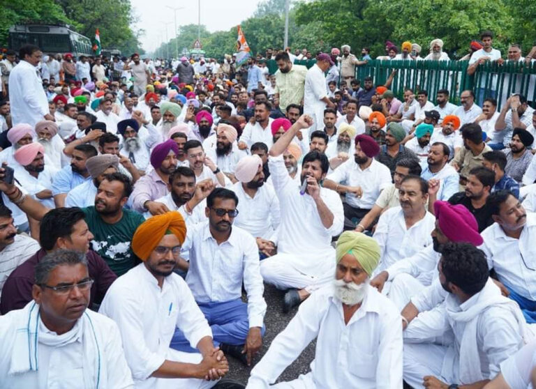 ਐਨਫੋਰਸਮੈਂਟ ਡਾਇਰੈਕਟੋਰੇਟ ਵੱਲੋਂ ਕਾਂਗਰਸ ਪ੍ਰਧਾਨ ਸੋਨੀਆ ਗਾਂਧੀ ਤੋਂ ਪੁੱਛਗਿੱਛ ਕੀਤੇ ਜਾਣ ਖ਼ਿਲਾਫ਼ ਪੰਜਾਬ ਕਾਂਗਰਸ ਨੇ ਚੰਡੀਗਡ਼੍ਹ ਸਮੇਤ ਪੰਜਾਬ ਦੇ ਕਈ ਜ਼ਿਲ੍ਹਿਆਂ ’ਚ ਜ਼ਬਰਦਸਤ ਵਿਰੋਧ ਪ੍ਰਦਰਸ਼ਨ ਕੀਤਾ। ਚੰਡੀਗਡ਼੍ਹ ਦੇ ਰੋਸ ਪ੍ਰਦਰਸ਼ਨ ’ਚ ਵੱਡੀ ਤਾਦਾਦ ’ਚ ਕਾਂਗਰਸੀ ਵਰਕਰਾਂ ਨੇ ਪੰਜਾਬ ਕਾਂਗਰਸ ਭਵਨ ’ਚ ਇਕੱਠੇ ਹੋ ਕੇ ਰਾਜ ਭਵਨ ਵੱਲ ਮਾਰਚ ਕੱਢਿਆ। ਉਨ੍ਹਾਂ ਨੂੰ ਰਸਤੇ ’ਚ ਪਾਣੀ ਦੀਆਂ ਬੁਛਾਡ਼ਾਂ ਨਾਲ ਰੋਕਿਆ ਗਿਆ ਤੇ ਬਾਅਦ ’ਚ ਪੁਲੀਸ ਵੱਲੋਂ ਹਿਰਾਸਤ ’ਚ ਲੈ ਲਿਆ ਗਿਆ। ਪ੍ਰਦਰਸ਼ਨ ਦੀ ਅਗਵਾਈ ਪੰਜਾਬ ਕਾਂਗਰਸ ਪ੍ਰਧਾਨ ਅਮਰਿੰਦਰ ਸਿੰਘ ਰਾਜਾ ਵਡ਼ਿੰਗ ਤੇ ਵਿਧਾਨ ਸਭਾ ’ਚ ਵਿਰੋਧੀ ਧਿਰ ਦੇ ਨੇਤਾ ਪ੍ਰਤਾਪ ਸਿੰਘ ਬਾਜਵਾ ਕਰ ਰਹੇ ਸਨ। ਇਸ ਦੌਰਾਨ ਮੌਜੂਦ ਰਹੇ ਹੋਰ ਨੇਤਾਵਾਂ ਵਿਚ ਸਾਬਕਾ ਉਪ ਮੁੱਖ ਮੰਤਰੀ ਸੁਖਜਿੰਦਰ ਸਿੰਘ ਰੰਧਾਵਾ, ਸਾਬਕਾ ਮੰਤਰੀਆਂ ’ਚ ਪਰਗਟ ਸਿੰਘ, ਅਰੁਣਾ ਚੌਧਰੀ, ਗੁਰਕੀਰਤ ਸਿੰਘ ਕੋਟਲੀ, ਤ੍ਰਿਪਤ ਰਾਜਿੰਦਰ ਸਿੰਘ ਬਾਜਵਾ, ਭਾਰਤ ਭੂਸ਼ਣ ਆਸ਼ੂ, ਰਾਣਾ ਗੁਰਜੀਤ ਸਿੰਘ ਸਮੇਤ ਲਖਬੀਰ ਸਿੰਘ ਲੱਖਾ, ਬਰਿੰਦਰ ਢਿੱਲੋਂ, ਦਰਸ਼ਨ ਸਿੰਘ ਬਰਾਡ਼, ਦਲਬੀਰ ਗੋਲਡੀ, ਬਰਿੰਦਰਮੀਤ ਸਿੰਘ ਪਾਹਡ਼ਾ, ਇੰਦਰਬੀਰ ਸਿੰਘ ਬੁਲਾਰੀਆ, ਕੈਪਟਨ ਸੰਦੀਪ ਸੰਧੂ ਤੇ ਮੌਜੂਦਾ ਤੇ ਸਾਬਕਾ ਵਿਧਾਇਕ ਸ਼ਾਮਲ ਰਹੇ। ਇਸ ਦੌਰਾਨ ਵਡ਼ਿੰਗ ਨੇ ਕਿਹਾ ਕਿ ਇਹ ਸਿਰਫ ਇਕੱਲੀ ਸੋਨੀਆ ਗਾਂਧੀ ਦੀ ਲਡ਼ਾਈ ਨਹੀਂ ਹੈ, ਬਲਕਿ ਇਹ ਦੇਸ਼ ਦੇ ਹਰ ਇਕ ਨਾਗਰਿਕ ਦੀ ਲਡ਼ਾਈ ਹੈ, ਜੋ ਲੋਕਤੰਤਰ ਤੇ ਆਜ਼ਾਦੀ ਦਾ ਸਮਰਥਨ ਕਰਦਾ ਹੈ। ਉਨ੍ਹਾਂ ਕਿਹਾ ਕਿ ਕੇਂਦਰ ਦੀ ਭਾਜਪਾ ਸਰਕਾਰ ਨੂੰ ਵੱਡੀ ਗਲਤੀ ਲੱਗੀ ਹੈ, ਜਿਸ ਨੇ ਇਹ ਸੋਚਿਆ ਕਿ ਉਹ ਕਾਂਗਰਸ ਪਾਰਟੀ ਨੂੰ ਡਰਾ ਸਕਦੀ ਹੈ। ਵਿਧਾਨ ਸਭਾ ’ਚ ਵਿਰੋਧੀ ਧਿਰ ਦੇ ਨੇਤਾ ਪ੍ਰਤਾਪ ਸਿੰਘ ਬਾਜਵਾ ਨੇ ਕਾਂਗਰਸ ਲੀਡਰਸ਼ਿਪ ਨੂੰ ਡਰਾਉਣ ਦਾ ਯਤਨ ਕਰ ਰਹੀ ਕੇਂਦਰ ਸਰਕਾਰ ਦੀ ਨਿੰਦਾ ਕੀਤੀ। ਉਨ੍ਹਾਂ ਕਿਹਾ ਕਿ ਸਰਕਾਰ ਵੀ ਜਾਣਦੀ ਹੈ ਕਿ ਇਸ ਨਾਲ ਕੁਝ ਨਹੀਂ ਨਿਕਲਣ ਵਾਲਾ ਪਰ ਉਹ ਇਹ ਸਿਰਫ ਝੂਠੀ ਸੋਚ ਪੈਦਾ ਕਰਨਾ ਚਾਹੁੰਦੀ ਹੈ। ਉਪ ਮੁੱਖ ਮੰਤਰੀ ਸੁਖਜਿੰਦਰ ਸਿੰਘ ਰੰਧਾਵਾ ਨੇ ਰਾਜਨੀਤਕ ਵਿਰੋਧੀਆਂ ਨੂੰ ਪ੍ਰਤਾਡ਼ਿਤ ਕਰਨ ਨੂੰ ਲੈ ਕੇ ਕੇਂਦਰ ਤੇ ਰਾਜ ਸਰਕਾਰਾਂ ਦੀ ਨਿੰਦਾ ਕੀਤੀ। ਰੰਧਾਵਾ ਨੇ ਭਾਸ਼ਣ ਦੌਰਾਨ ਕਾਂਗਰਸ ਦੇ ਕਈ ਆਗੂਆਂ ਨੂੰ ਵੀ ਰਗਡ਼ੇ ਲਾਏ ਅਤੇ ‘ਆਪ’ ਸਰਕਾਰ ’ਤੇ ਭ੍ਰਿਸ਼ਟਾਚਾਰ ਦੇ ਦੋਸ਼ ਮਡ਼੍ਹੇ।